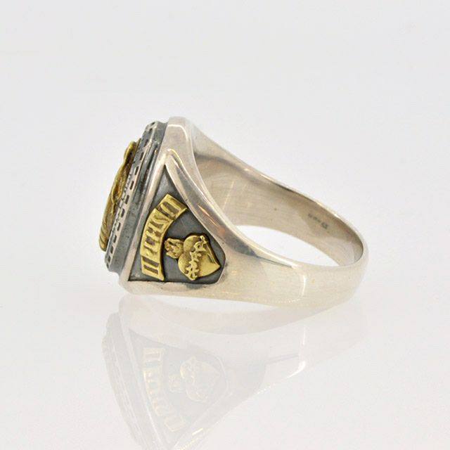 リングの中央に真鍮製マリアを配し両サイドにはマリアに縁のあるシンボルを組み合わせました。