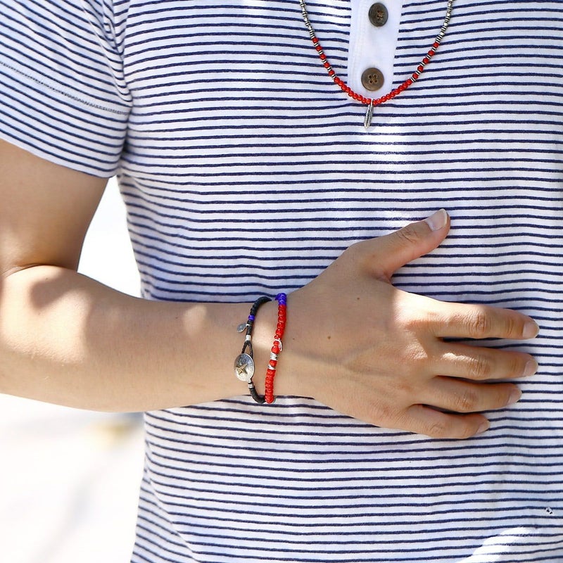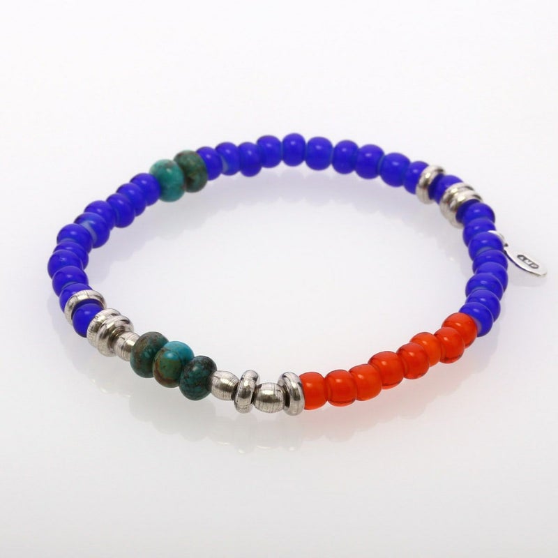 ホワイトハーツとターコイズ、メタルビーズを組み合わせたブレスレットになります。シンプルなデザインなので重ね付けにもおすすめです。