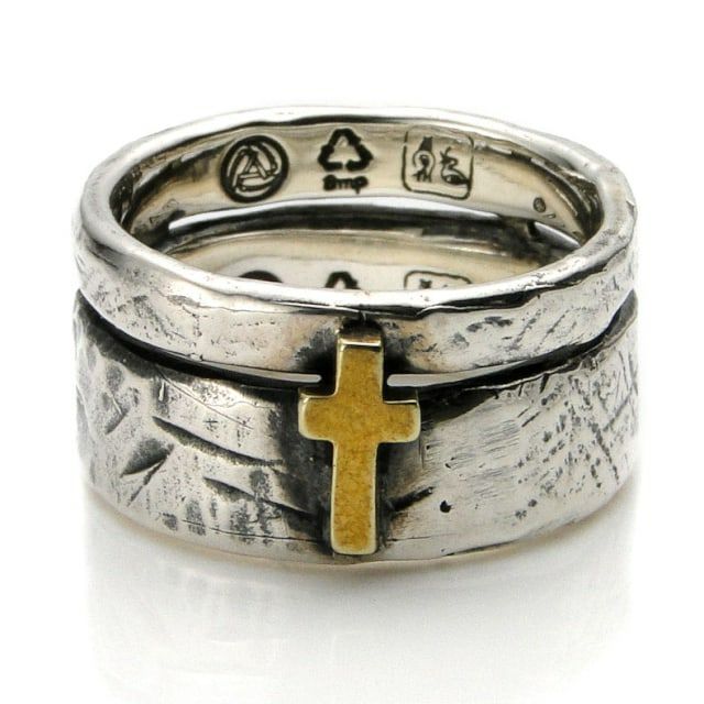 シンプルなアンティーク加工が施されたクロスモチーフリング。付属のコードを用いればペンダントとしても使用できます。