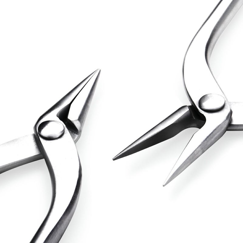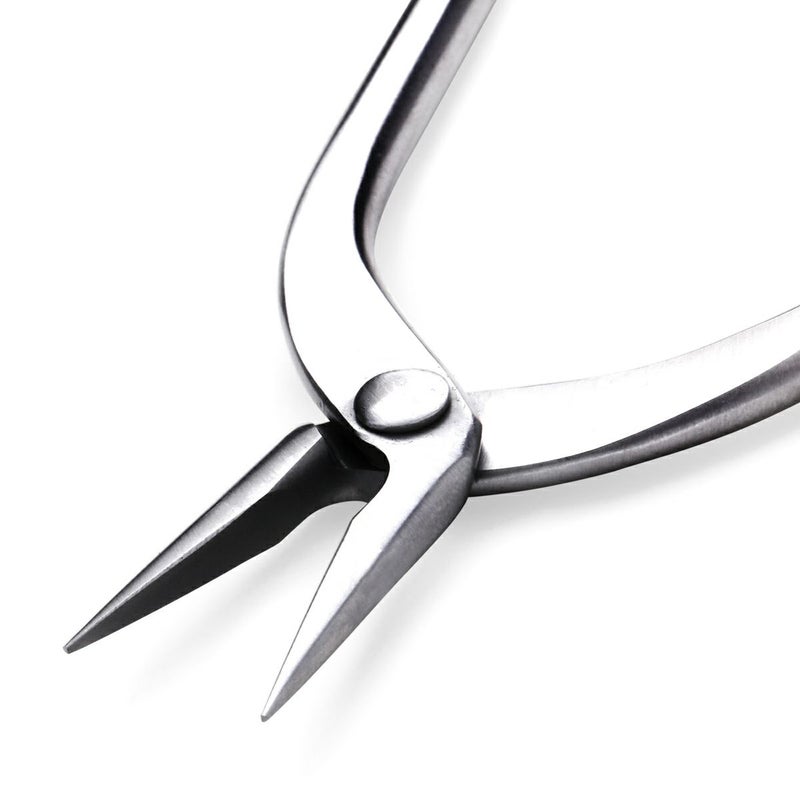 ステンレス製です。強くつかむことができます。板や線材を折り曲げたりつぶしたりすることに適しています。くわえ部にギザがなく、パーツ(対象物)を傷付けません。