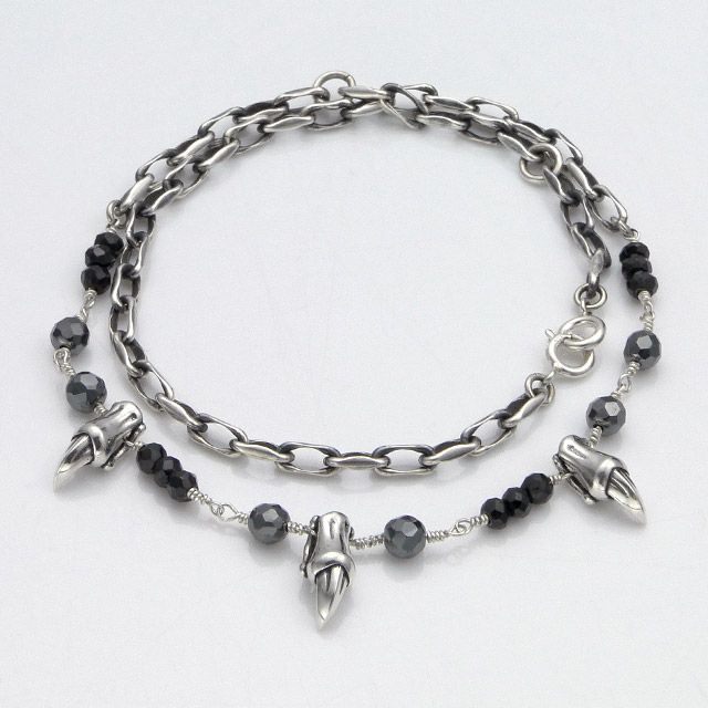 Silver925、レザー、ブラックスピネル、ヘマタイト