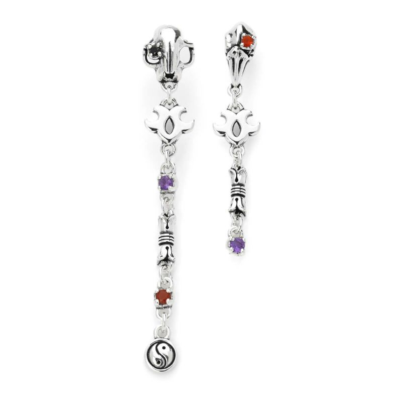 【カスタム】 ブラッディマリー KAI 化猫/八咫烏 ピアスセット w/アメシスト/ファイアオパール/ブラックスピネル