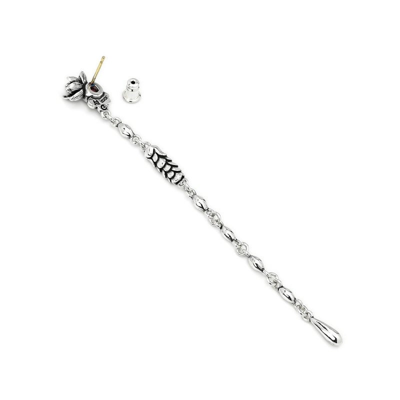 【カスタム】 ブラッディマリー ウォーターローズピアス -水咲花-(左耳用) w/ピンクトパーズ