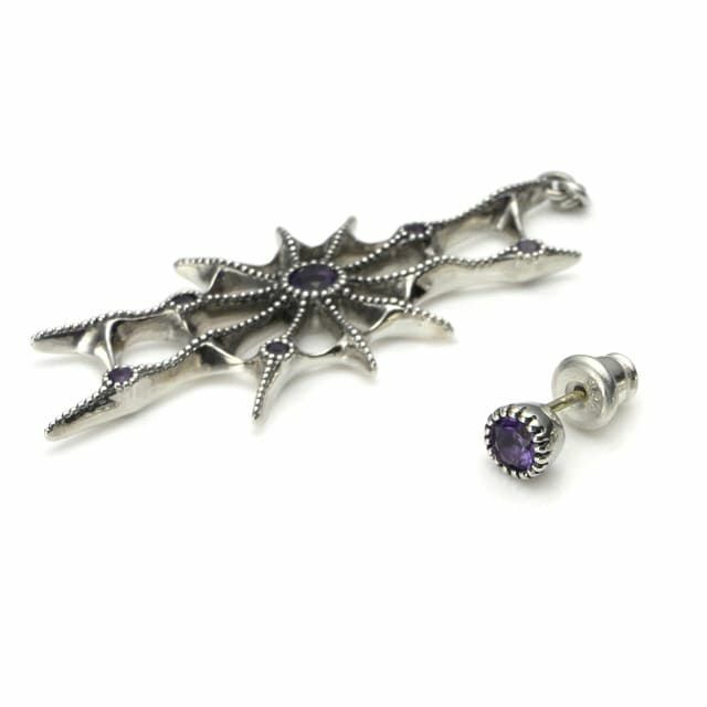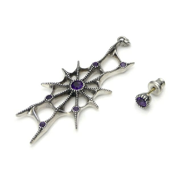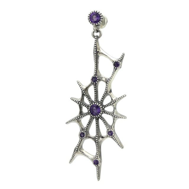 蜘蛛の巣のインパクトあるデザインのピアス。スタッドピアス部分のみでも使用できるのでコーディネートしやすいアイテムとなっております。左耳用