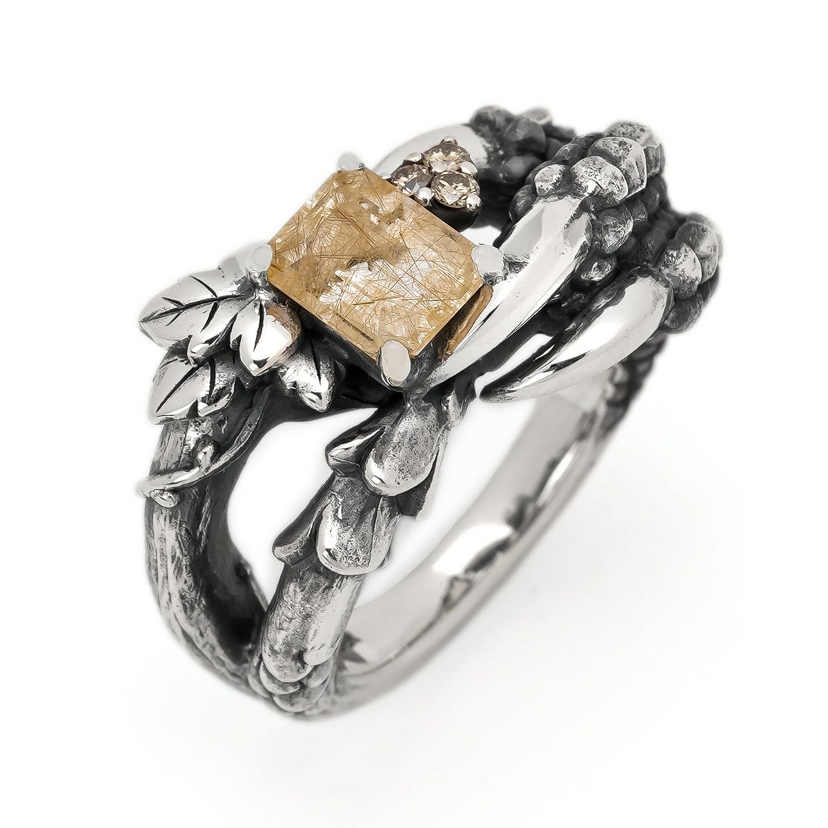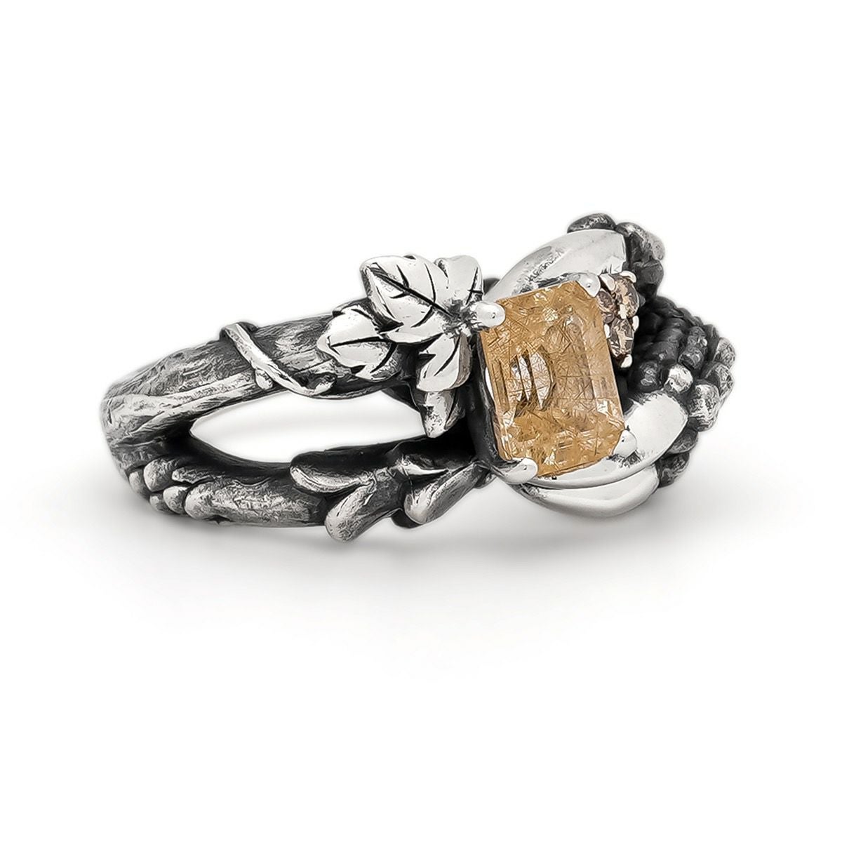 ブラッディマリー バルブリング w/ゴールデンルチルクォーツ/ブラウンダイヤモンド