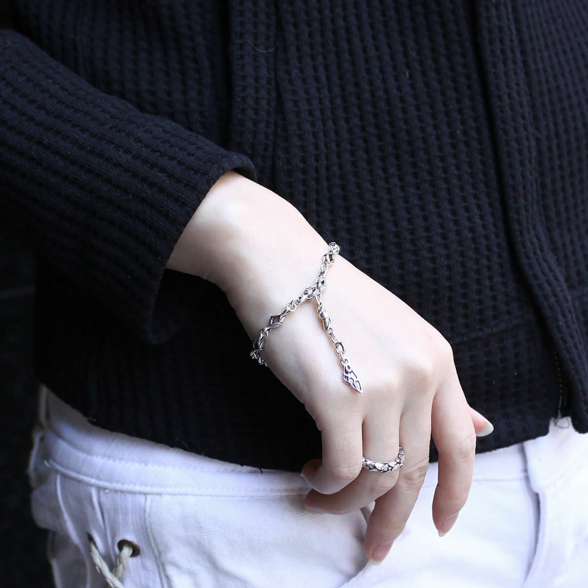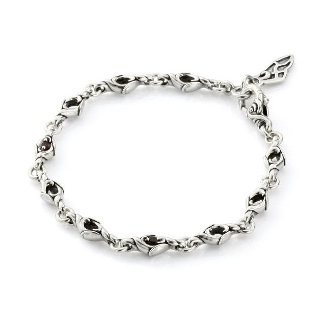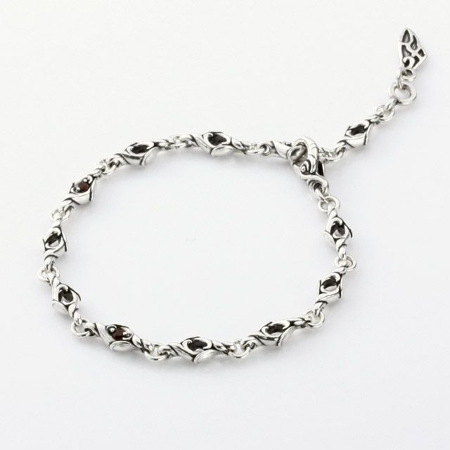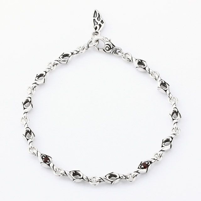 小さな火の粉と、揺れながら空を漂う動きをガーネットとシルバーでデザインしたブレスレットです。