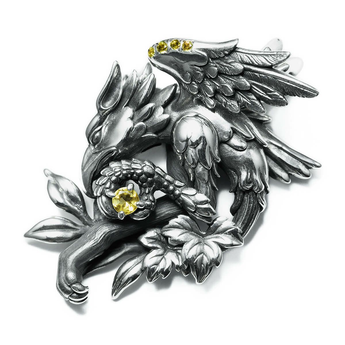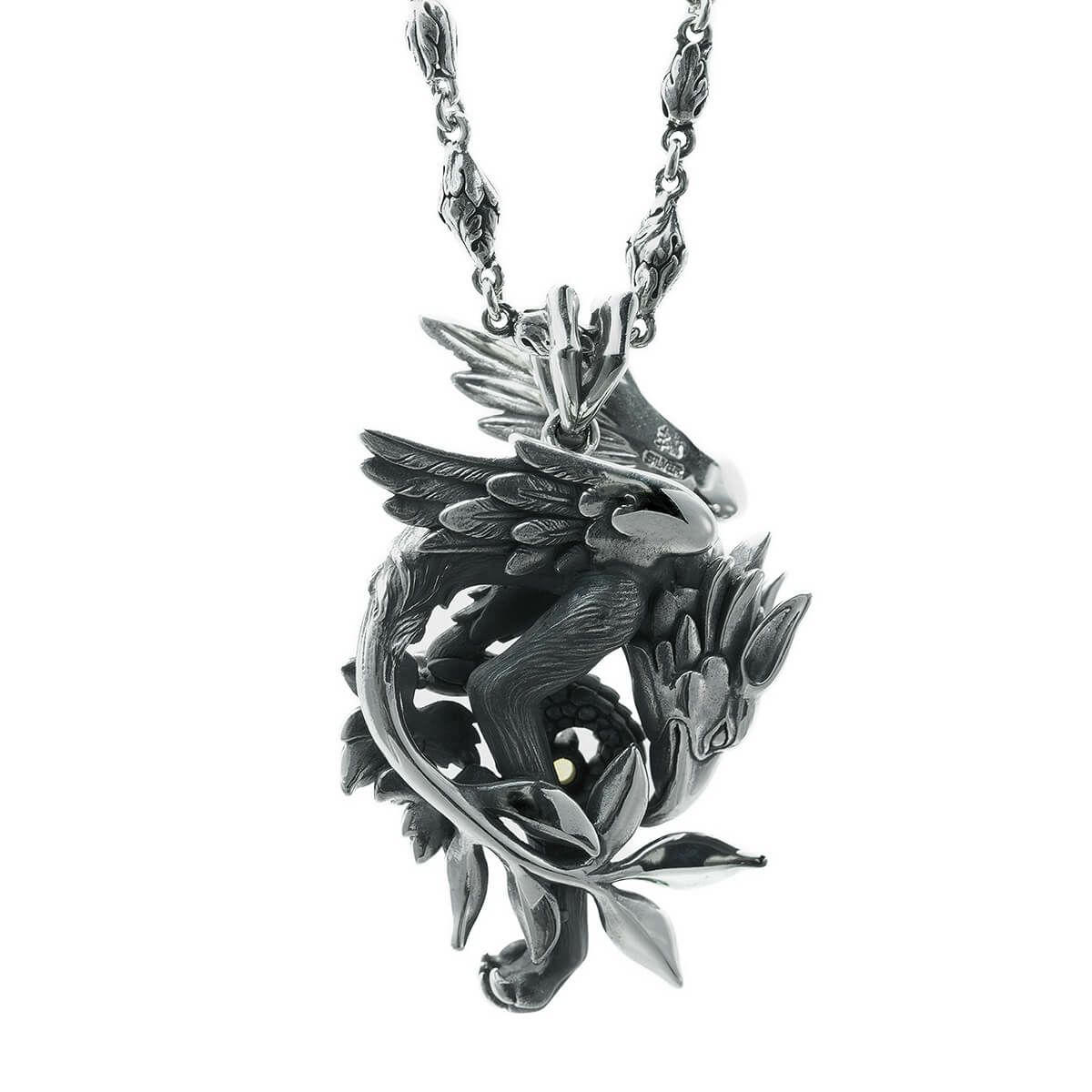 ウーラノスがアネモイへと進化を遂げた姿。お守りチャーム以来初となる全体像を描いたペンダント。 大きな翼で空高く舞い、大きな前脚で獲物を捕獲する。 勇ましく美しいアネモイの姿を表現した。