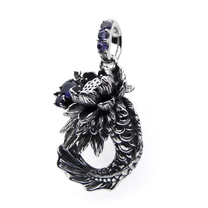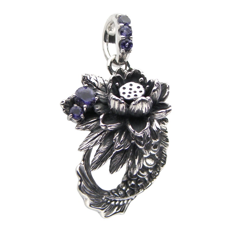 【カスタム】 ブラッディマリー ロータスヘッドペンダント -蓮魚- w/アイオライト