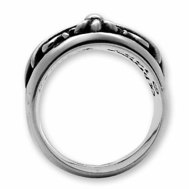 深い彫りで『花に飾られたクロス』をモチーフにしゴシック調にデザインされたリング。身に着けた時には格調高い雰囲気で手元を演出します。使っていく毎にとてもいい味が出てくるので是非一生物として大切に使ってもらいたいリングです。