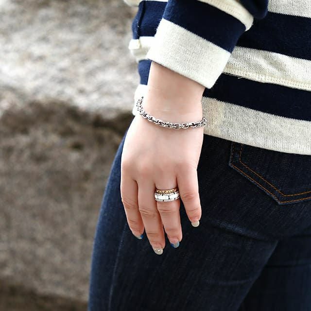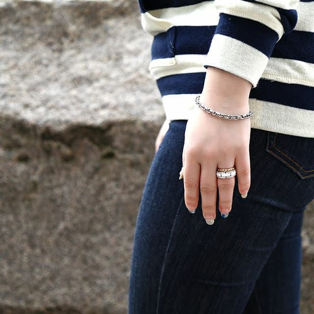 パーティーの時に紙で作る鎖飾りをモチーフにしたデザイン。クロムハーツのチェーンの中でも人気の高いブレスレット。一点着け、重ね着け両方に使えるミドルボリュームで、ヘビロテ必至。
