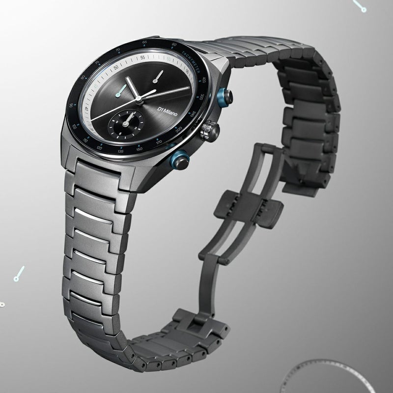 中でも注目は、ガンメタル仕上げの “Essential Black” モデル。マットで指紋がつきにくいサンドブラスト加工が施され、重厚で洗練された存在感を放ちます。さらに、インダイヤルやプッシュボタンに加えられた控えめなアクセントカラーが、ミニマルな世界に現代的な息吹を与えています。この絶妙なバランス感覚が、D1 MILANOらしさを象徴しています。