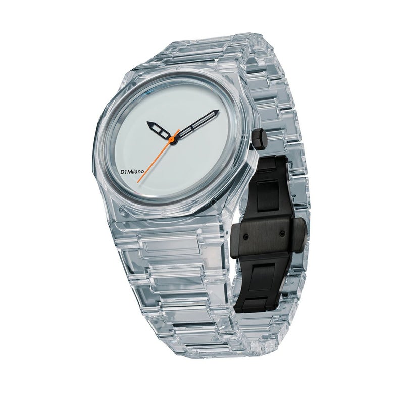 中でも最大の注目は、あえて内部構造を見せた「透明ナイロン製ブレスレット」です。これまで隠されていたピン構造をデザインに昇華し、ミニマルなルックスにテクニカルなエッジをプラス。軽やかな見た目と、肌と一体化するような装着感を両立しました。