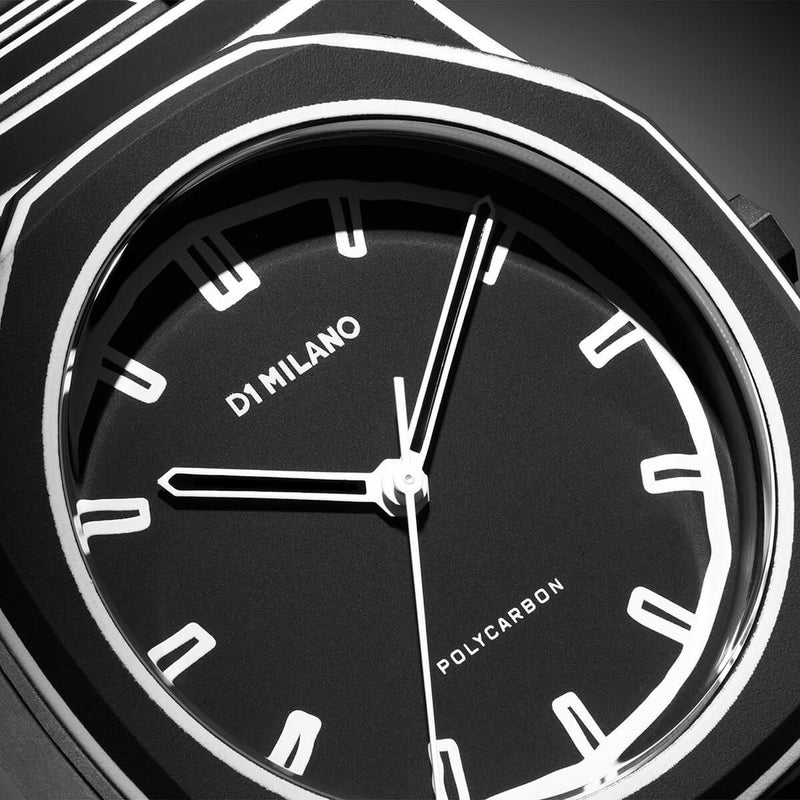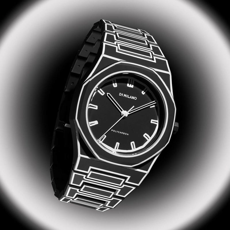 「ポリカーボン」から“スケッチ(SKETCH)”と称された2つのシーズンリミテッドモデルが登場! 手書きで描かれた腕時計のイラストをそのまま時計全体にプリントし、2次元アートを3次元に昇華させることで、デザインの面白さや美しさ、そしてアクセサリーとしての魅力を体現するために生み出された。マットブラックベースにホワイトの線画を用いて、本体とイラストとのコントラストが際立つ配色に。軽量で耐久性の高いポリカーボネートを本体素材に採用し、ファッションウォッチとしての遊び心が詰まった限定モデルとなっている。ケース径は40.5mm。5気圧防水。