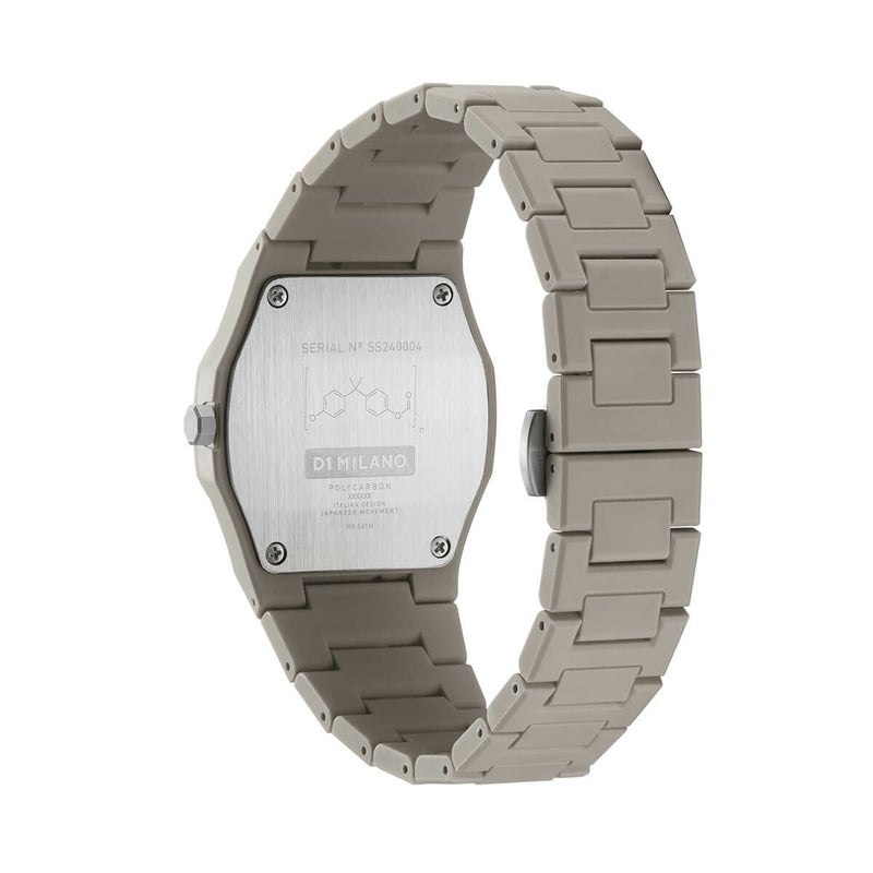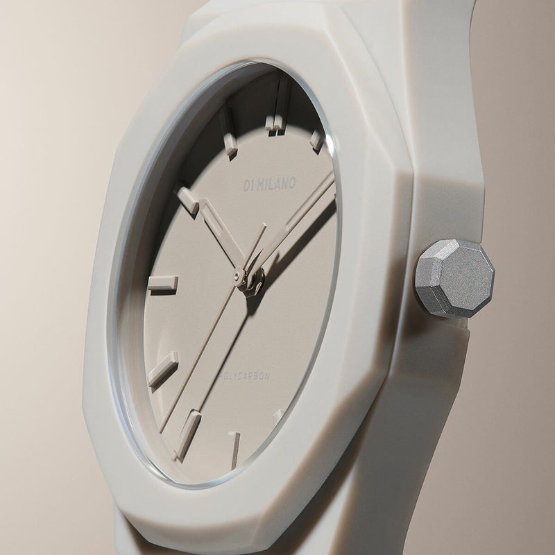 「ポリカーボン」は、軽量で耐久性に優れた素材である“ポリカーボネート”をケースとストラップに採用し、なめらかで心地のよい手触りが特徴のソフトタッチコーティングが施された、他に類を見ない独創的な腕時計。