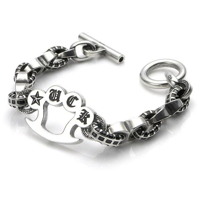 「自分の運を試す」という名のブレスレット。中央のナックルダスターには「☆UCK」とトランプのスートが表と裏に描かれている。