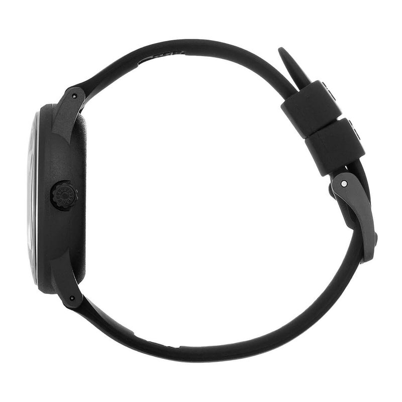 「ブラックゴールド」は、ブラックベースでは初となるイエローゴールドのインデックスを採用。電池交換不要のエコな日本製ソーラームーブメント。柔らかなシリコンラバーベルト。裏蓋やバックルは金属パーツ不使用で肌に優しい素材。5気圧防水。リサイクルフェルトパッケージ付属。