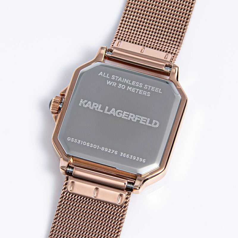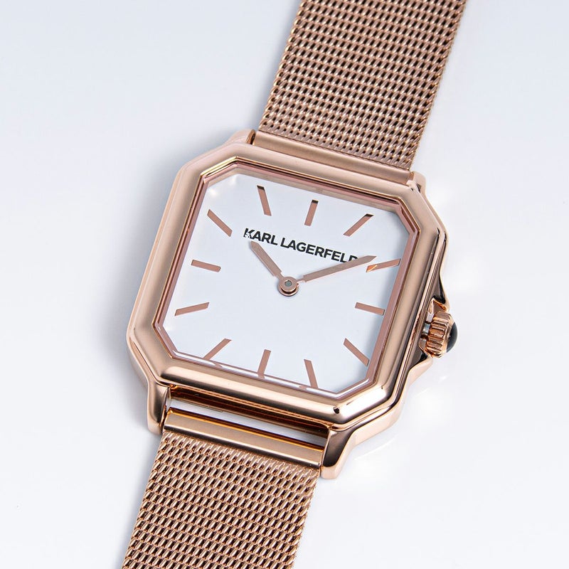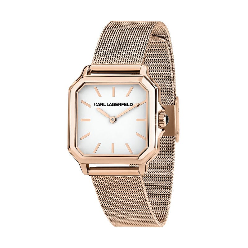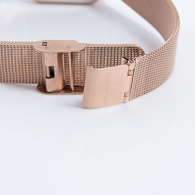 カール・ラガーフェルド スクエア クラシック - ホワイト ダイヤル ローズゴールド メッシュ