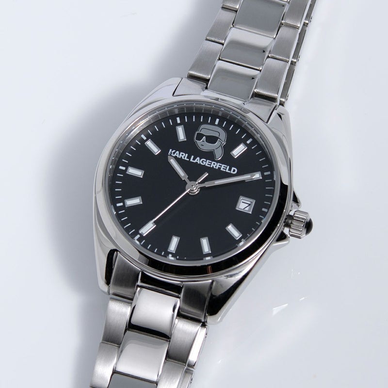 カール・ラガーフェルド ラウンド エッセンシャル - ブラック サンレイ アイコン ダイヤル シルバー