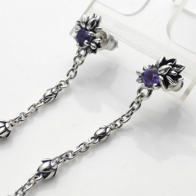 石に蓮の花が咲いたようなデザイン。同コレクションのロータスブリーズショートピアスのロングバージョン。