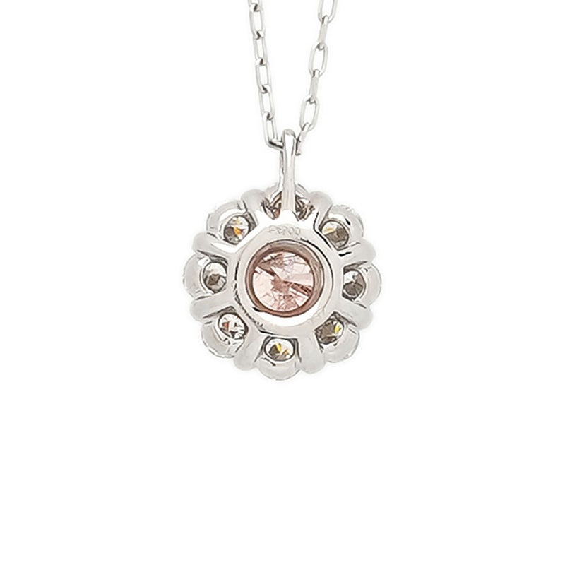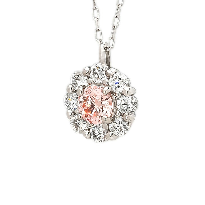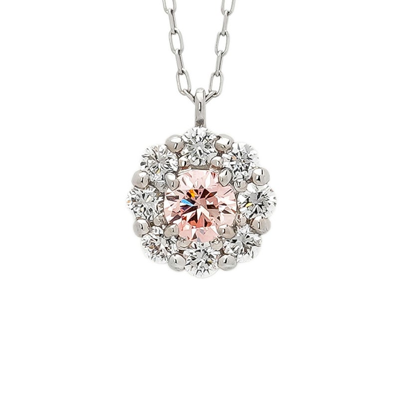 可憐な色合いが魅力的なピンクのラボグロウンダイヤモンドと、透明感のあるラボグロウンダイヤモンド8石の2色のラボグロウンダイヤモンドを組み合わせたネックレスです。