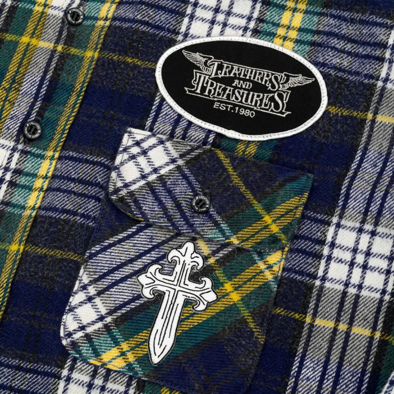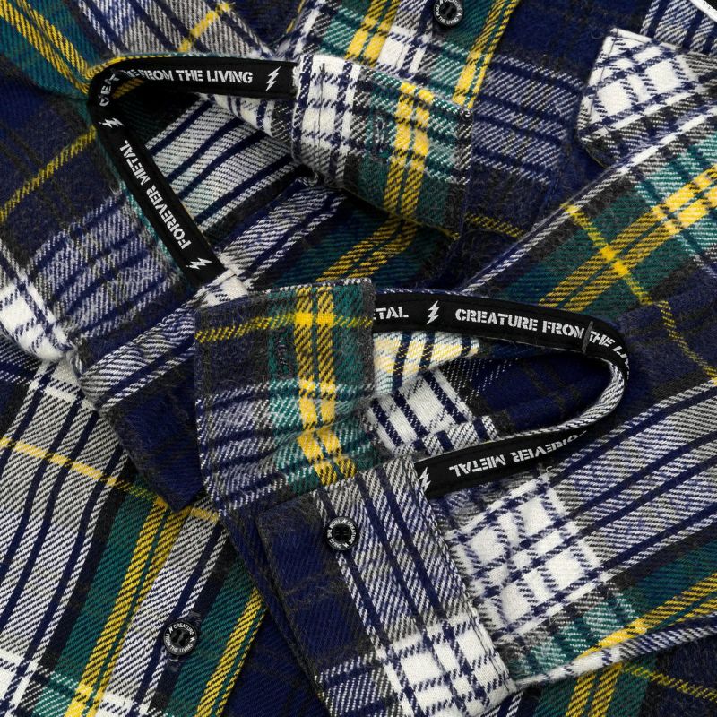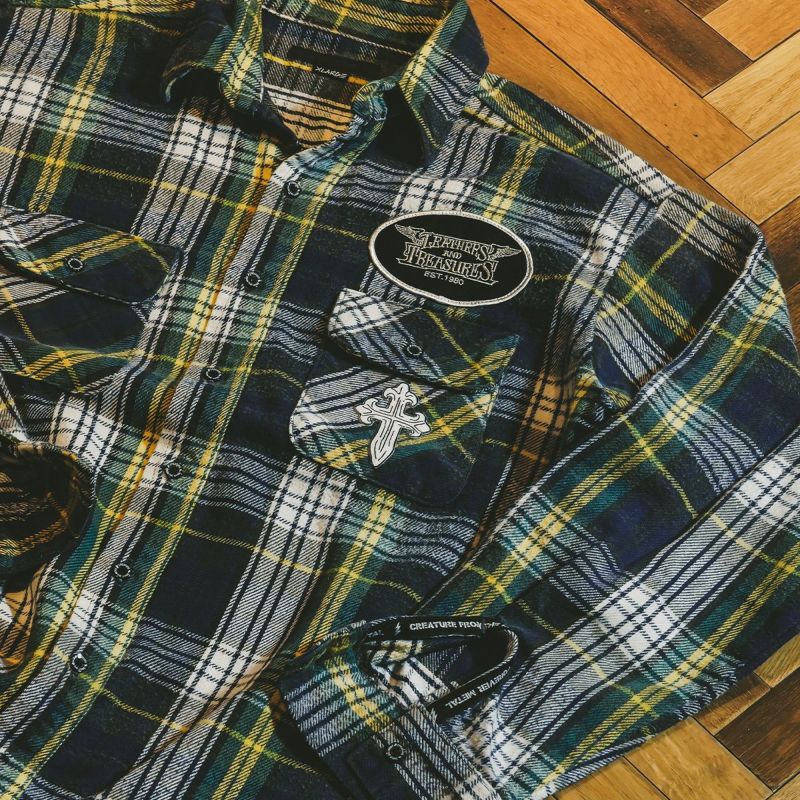 ケニー氏が厳選したヴィンテージのブランケットシャツをカスタムベースとして使用し、ライニングの一部箇所にはCREATURE TAPEを施しボタンもC.F.T.L.オリジナルへと変更した、1点ずつ異なる様々な風合いを見せる作品として13枚限定にて発売いたします。