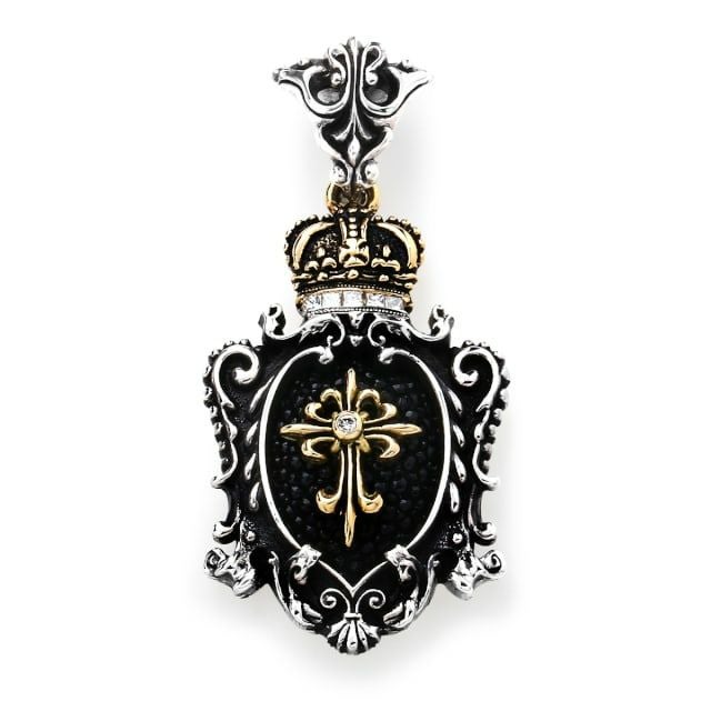 レザーズアンドトレジャーズ キングクラウンクレストインレイペンダント w/K18エスタブリッシュクロス&クラウン w/dia/dia(トップのみ)