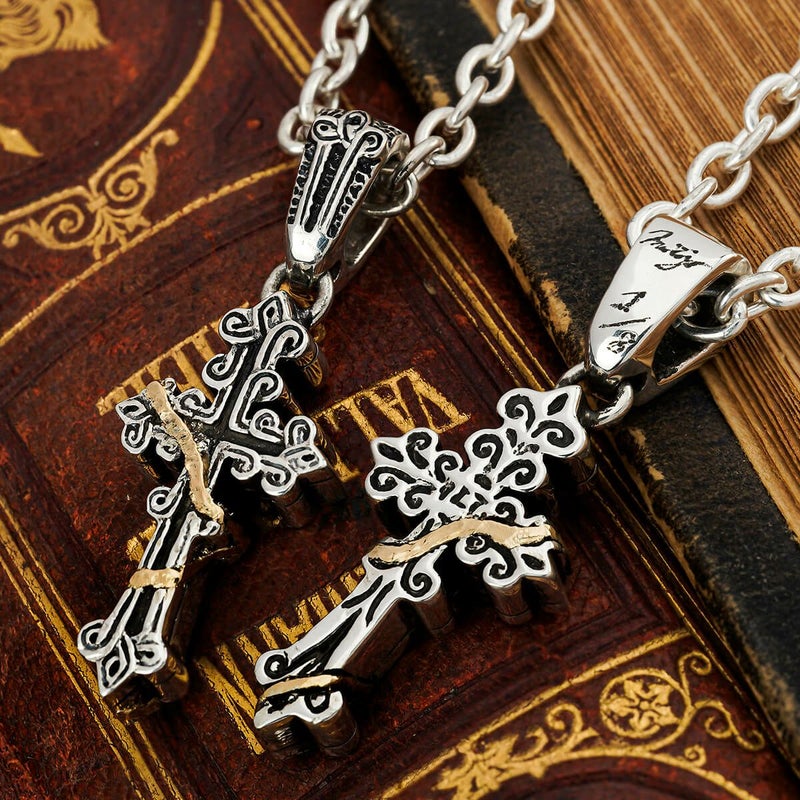 古くより北欧に伝わる伝統的なケルティック文様を彫り込み、小振りの十字架を厚みのあるバランスに仕上げた人気のペンダント。あえて個体差が出るようにK18デコレーションを組み合わせた、ビヨンクールオンラインストア限定の特別仕様アイテムです。