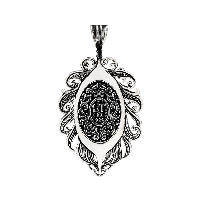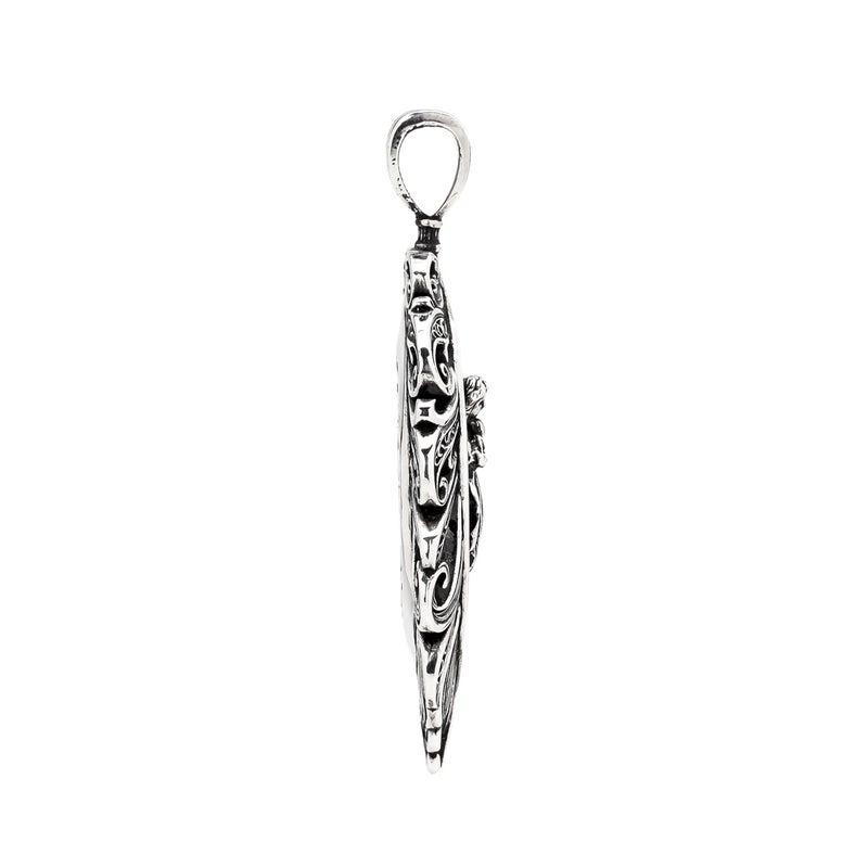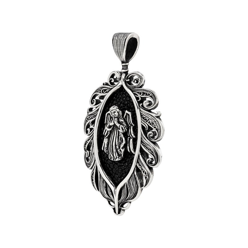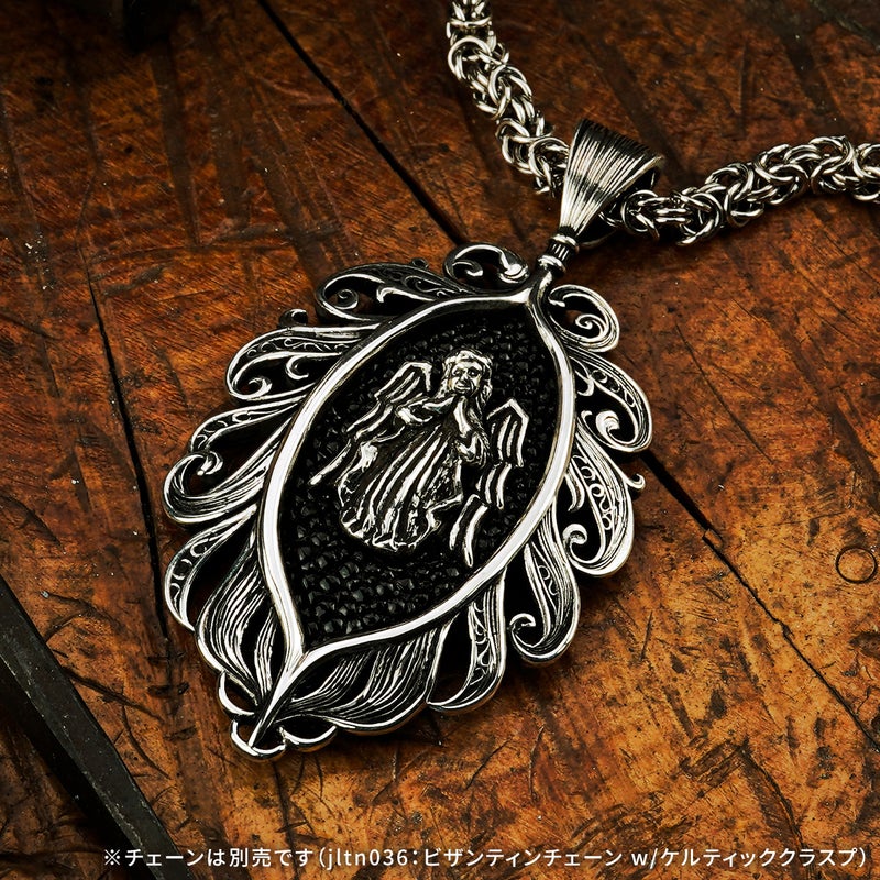 LTならではのインレイ技法が持つ迫力と存在感のあるデザインを、天使から舞い降りた羽根に抱擁される姿を表現した繊細さと優雅さを併せ持つアイテムとして制作されたペンダント。