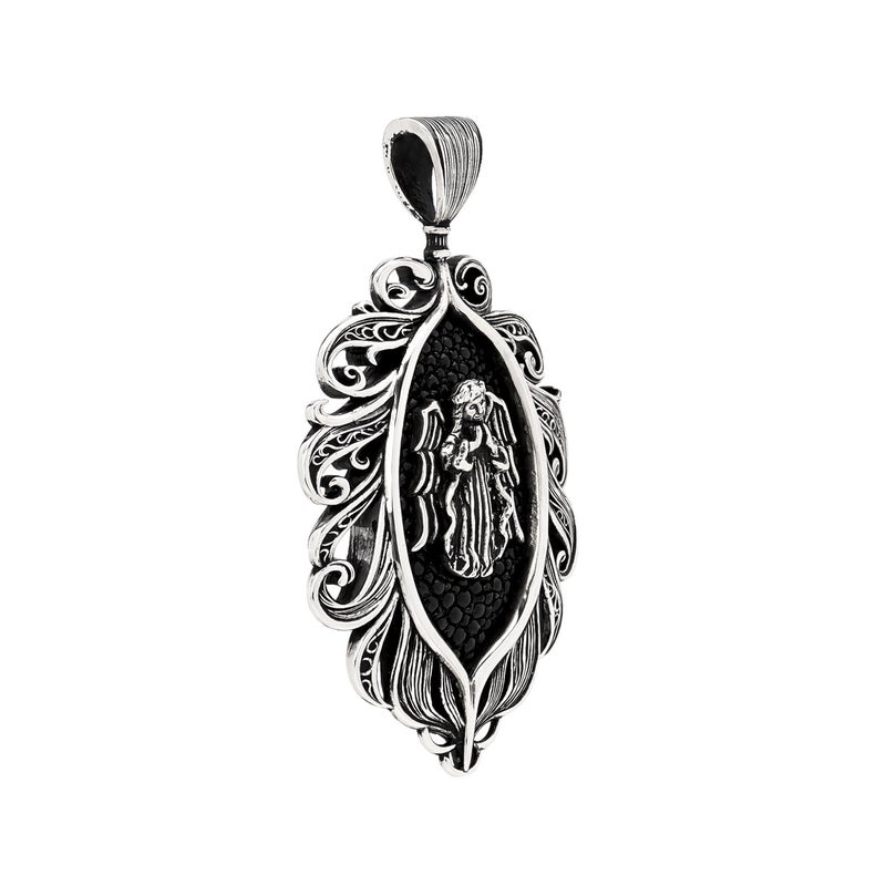 レザーズアンドトレジャーズ エンブレイスフェザーインレイペンダント w/ガーディアンエンジェル w/スティングレイ(レザーカラー選択可能)