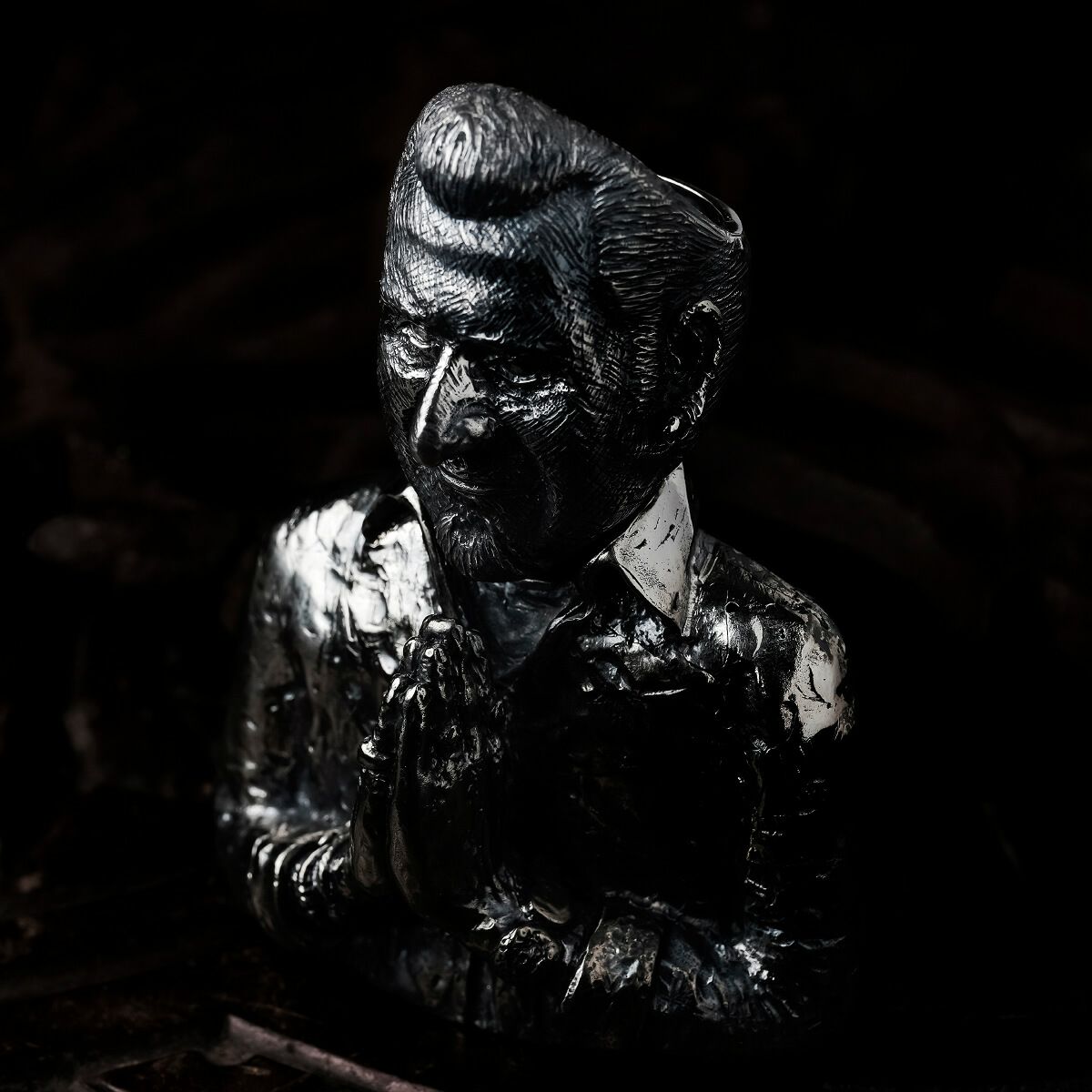 両手を合わせ祈るポーズの上半身をデザインした、リングスタンドとのセットアイテムです。