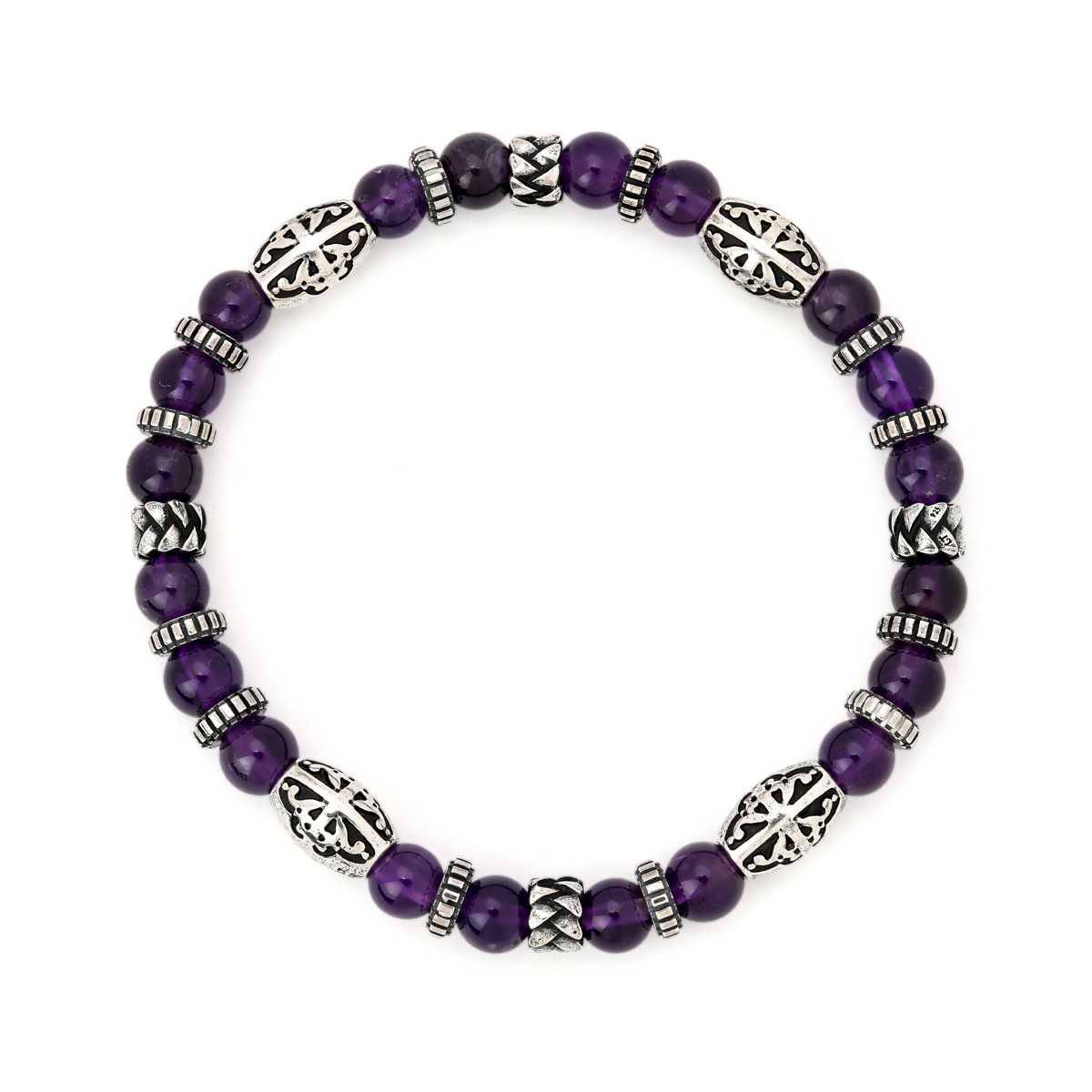 小振りサイズのシルバービーズに心を落ち着かせると言われるアメシストを組み合わせた、腕元のアクセントとして使いやすい6mm幅のストーンブレスレット。