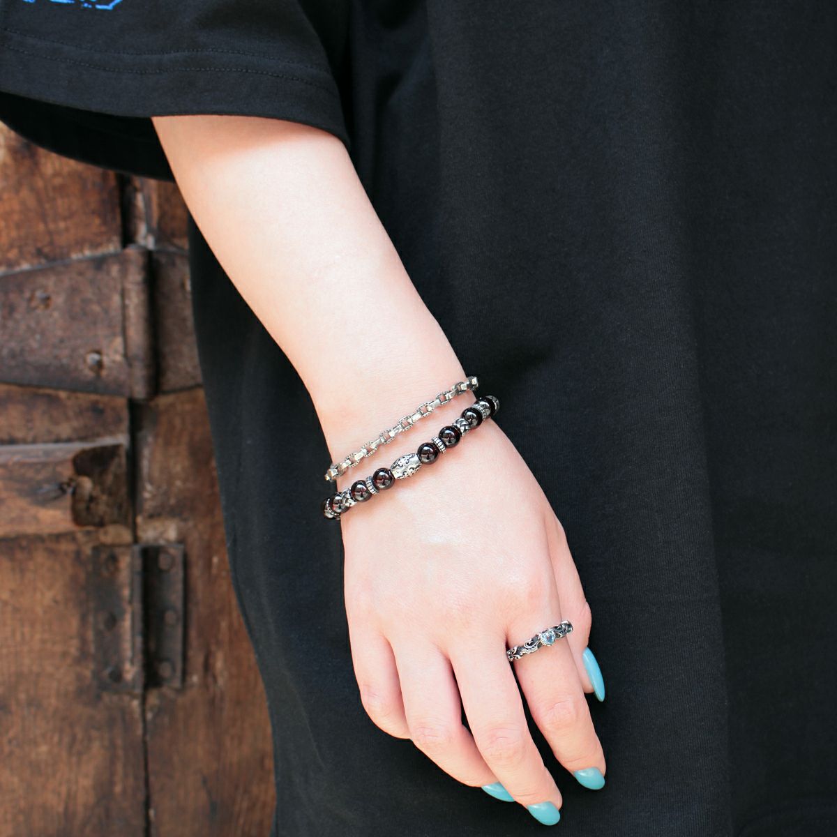 レザーズアンドトレジャーズ 8mmガーネットビーズブレスレット/Cタイプ