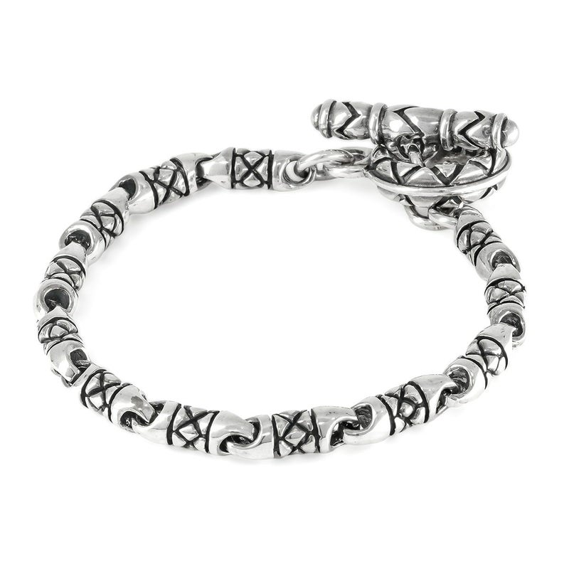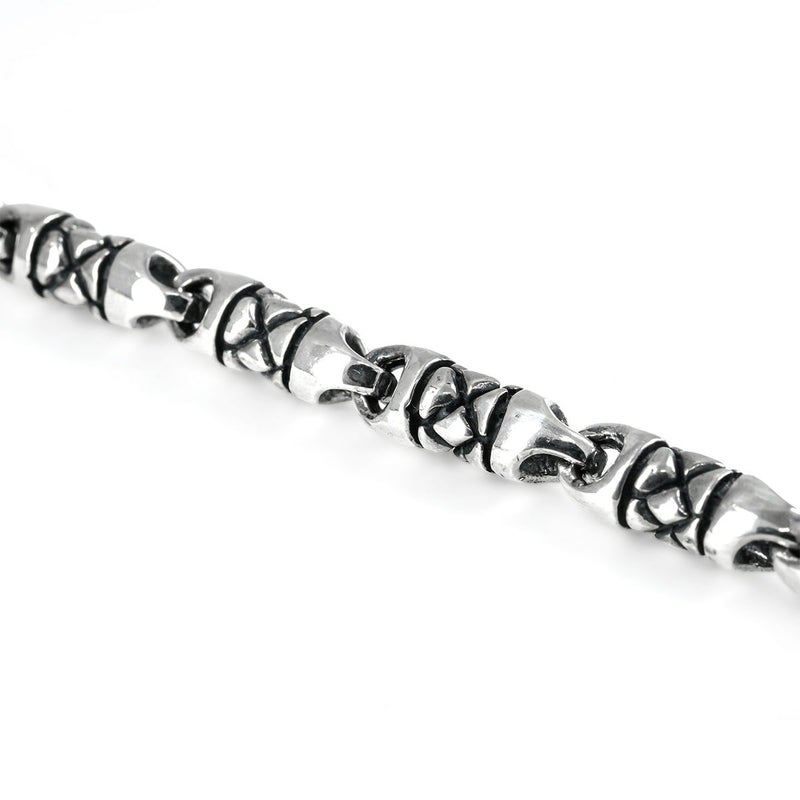 細身のリンクパーツに立体的なダイヤモンドパターンを彫り込んだ、スタイルを選ばずに着用できる万能アイテムです。