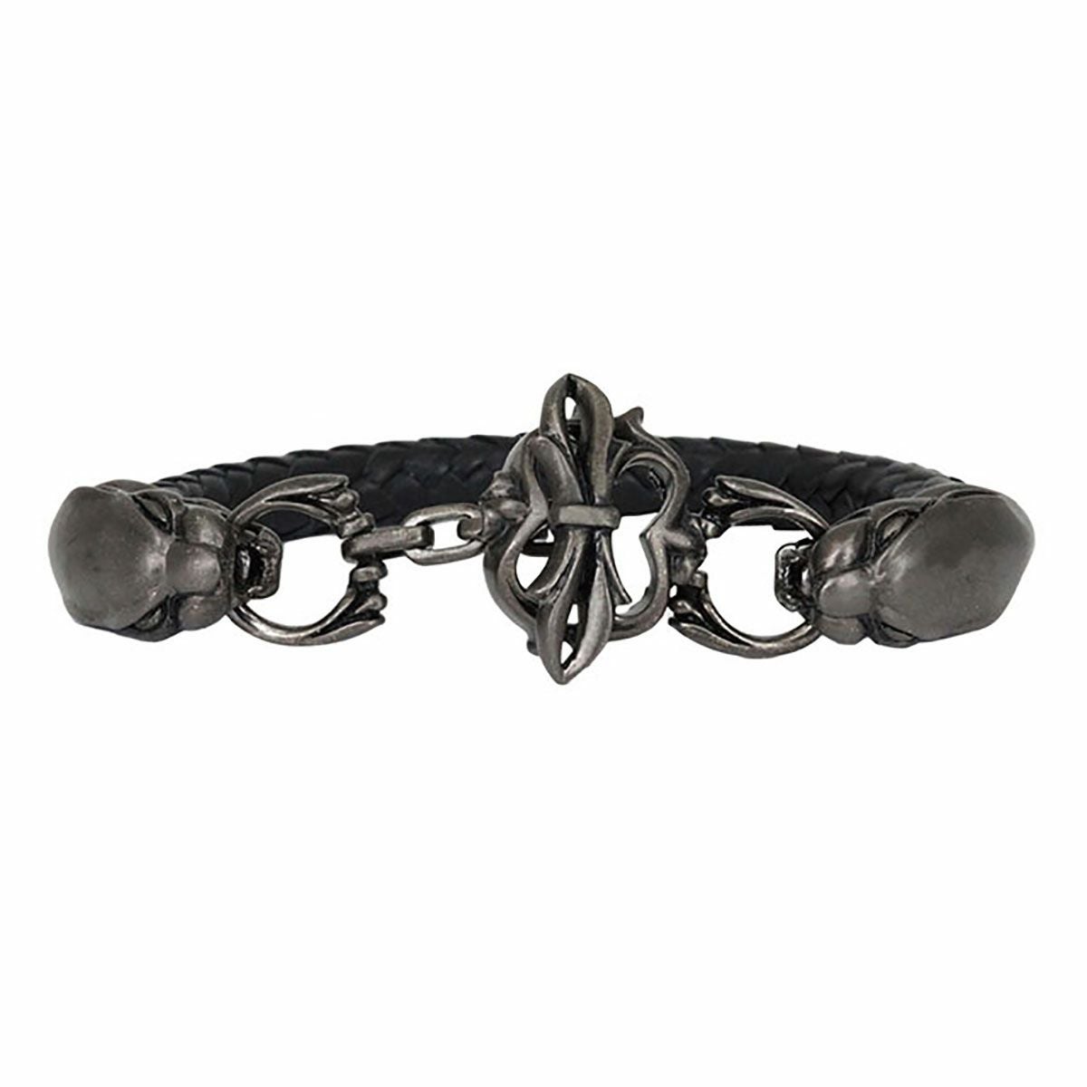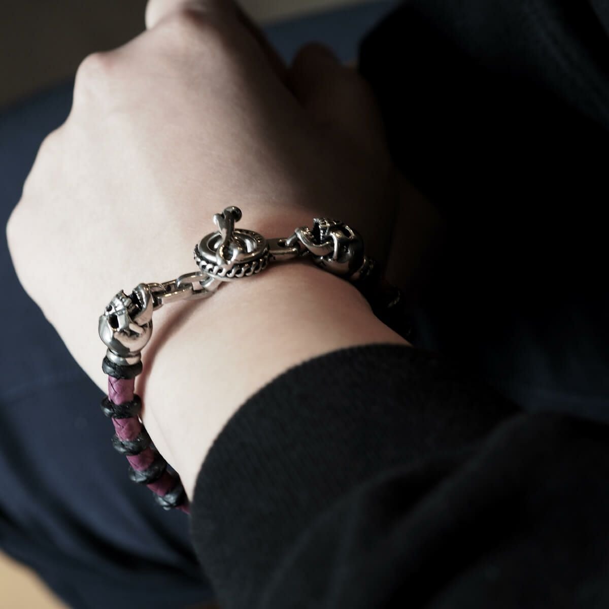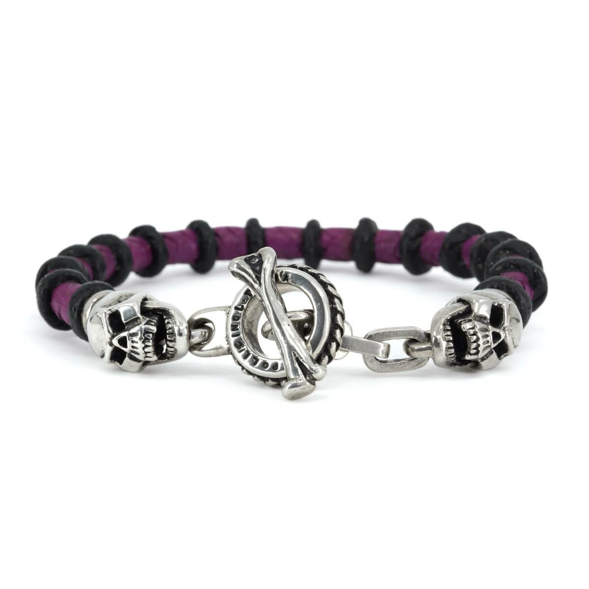 レザーズアンドトレジャーズ スモールスカルレザーブレスレット ブラック&パープル