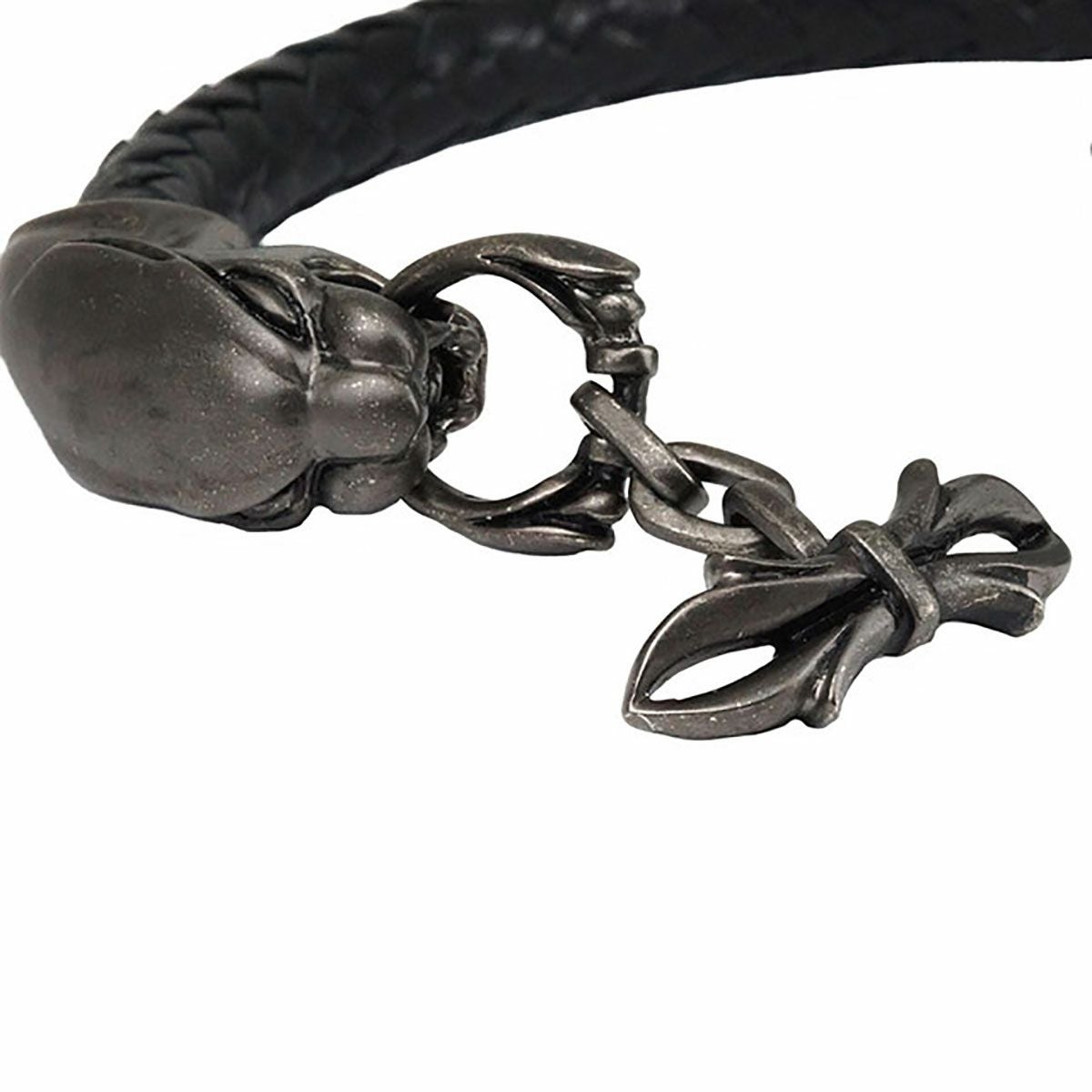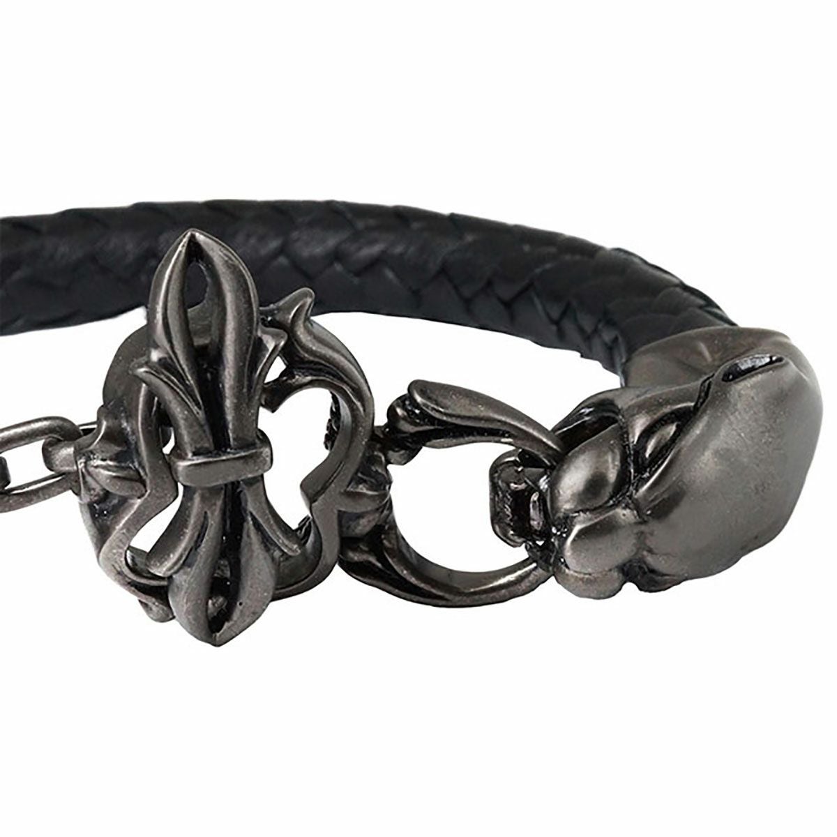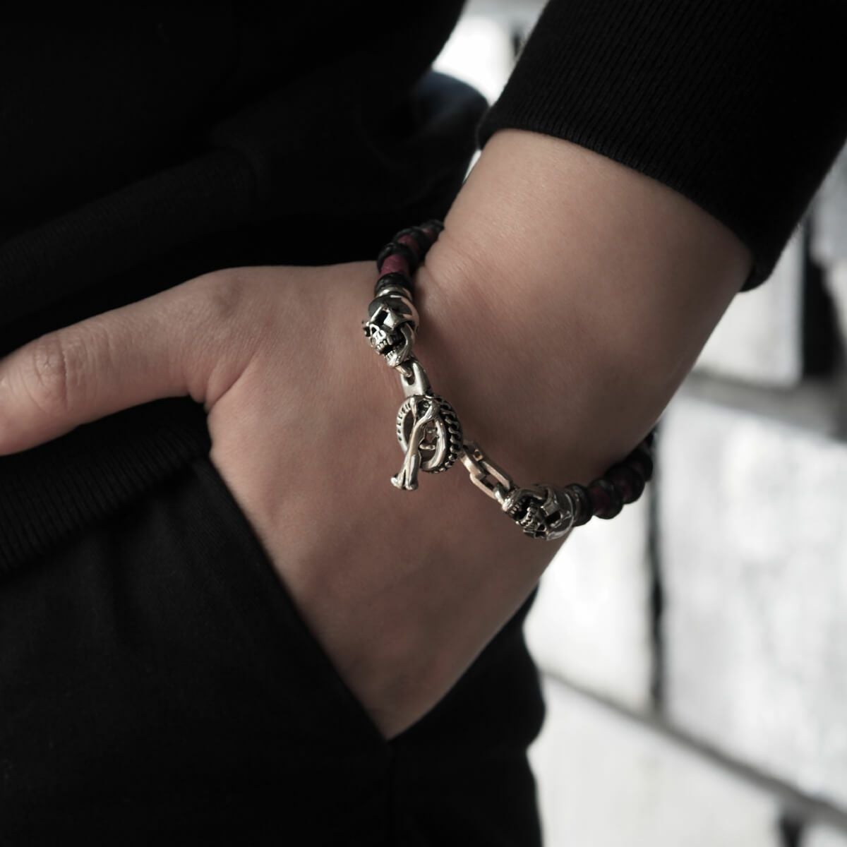 レザーズアンドトレジャーズ スモールスカルレザーブレスレット ブラック&パープル
