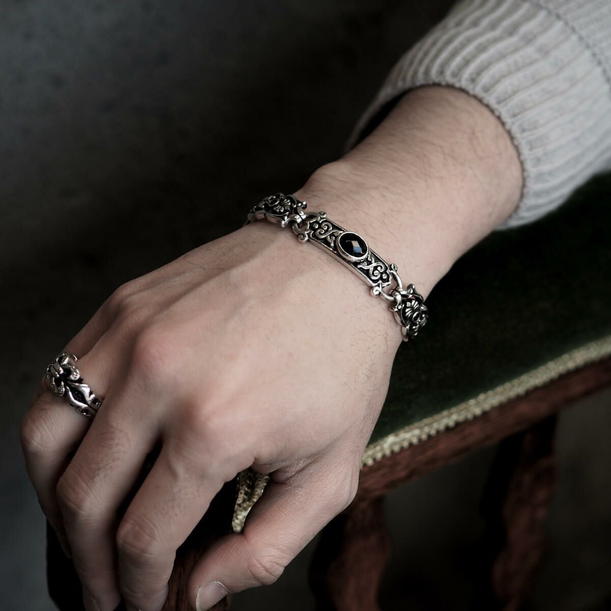 レザーズアンドトレジャーズ ラージエングレイブドボックスリンクブレスレット