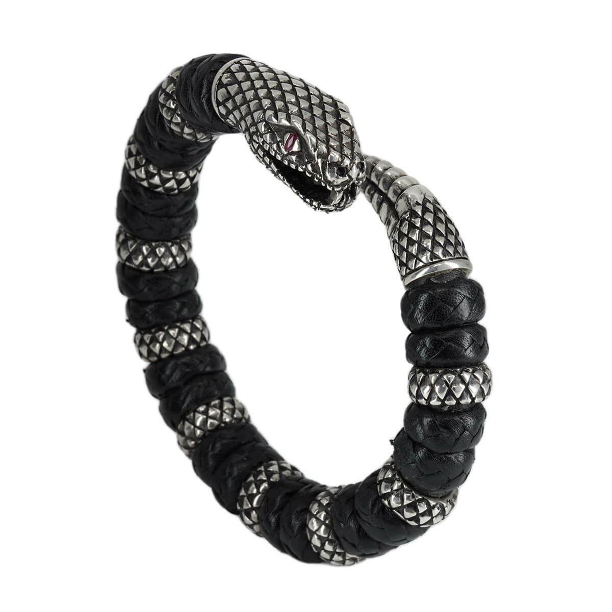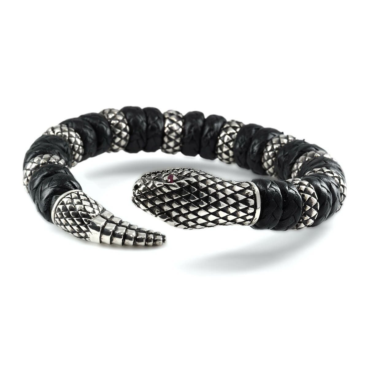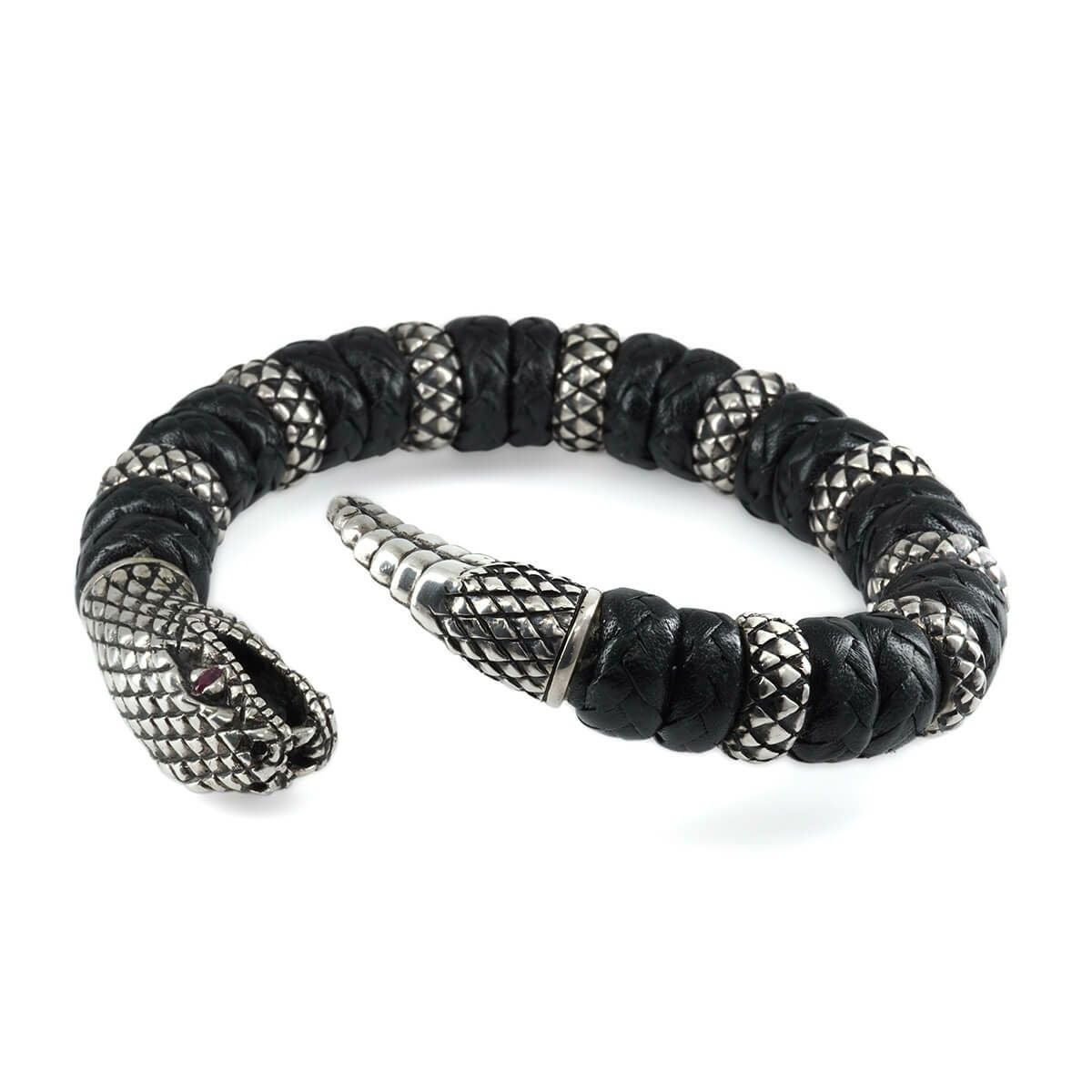 レザーズアンドトレジャーズ スモールスネークレザーバングル w/ルビーアイズ w/9リング