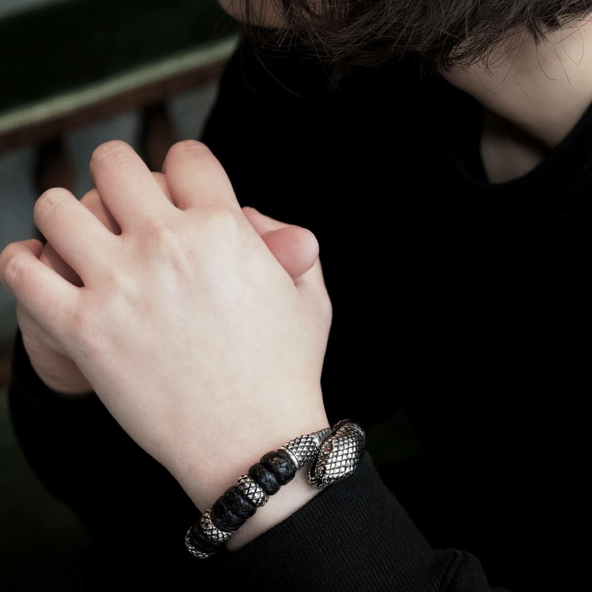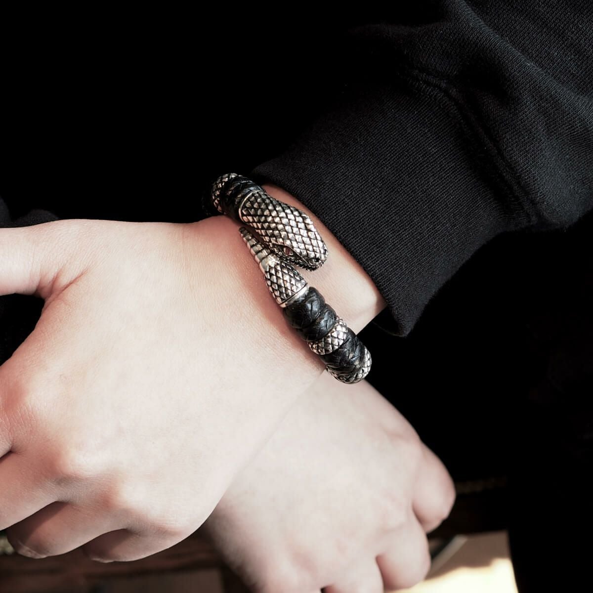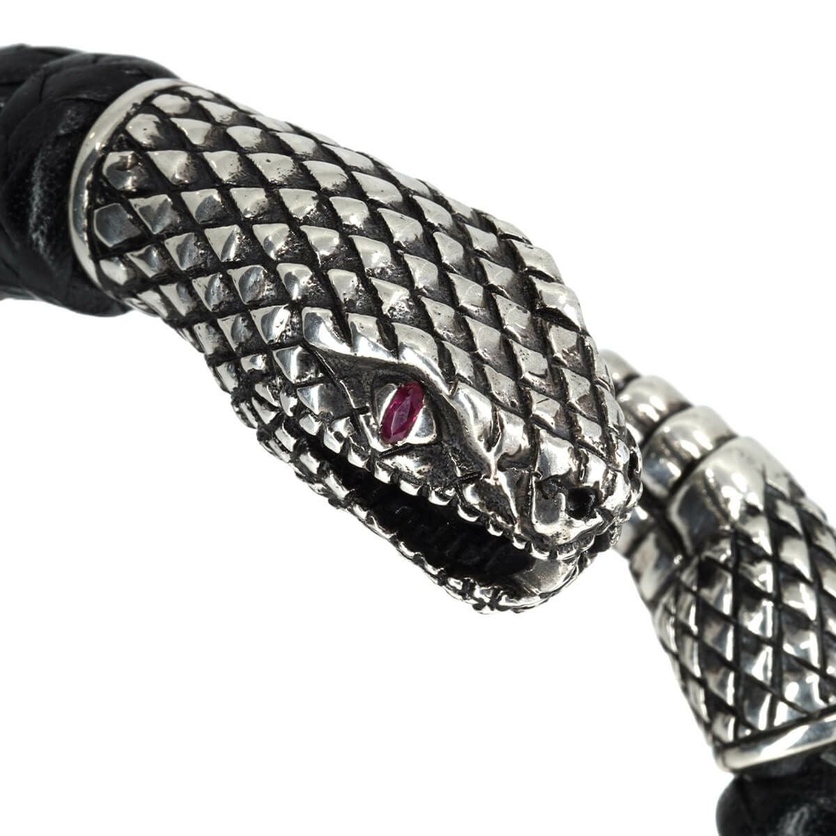 レザーズアンドトレジャーズ スモールスネークレザーバングル w/ルビーアイズ w/9リング