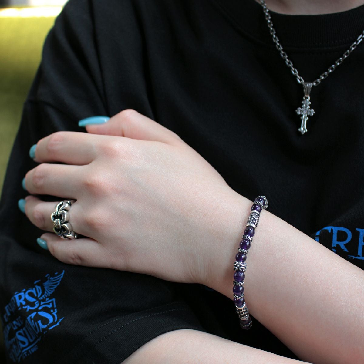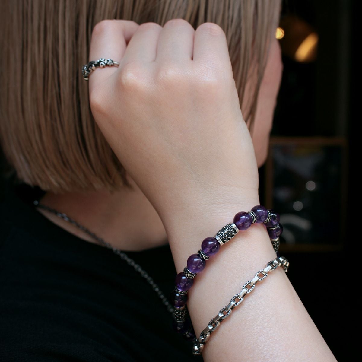 レザーズアンドトレジャーズ 8mmアメシストビーズブレスレット/Bタイプ