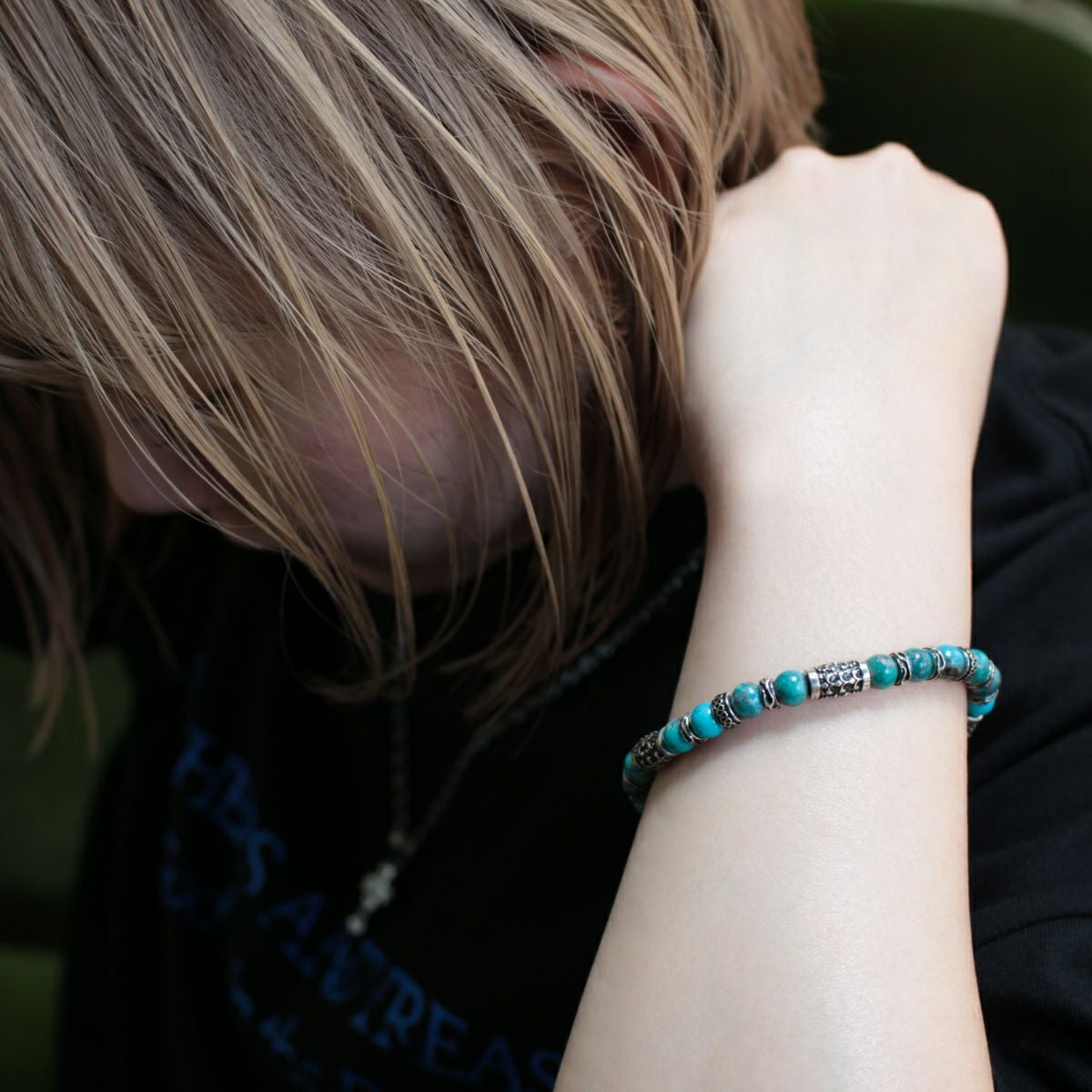 レザーズアンドトレジャーズ 6mmターコイズビーズブレスレット/Cタイプ w/ポリチーノクロス