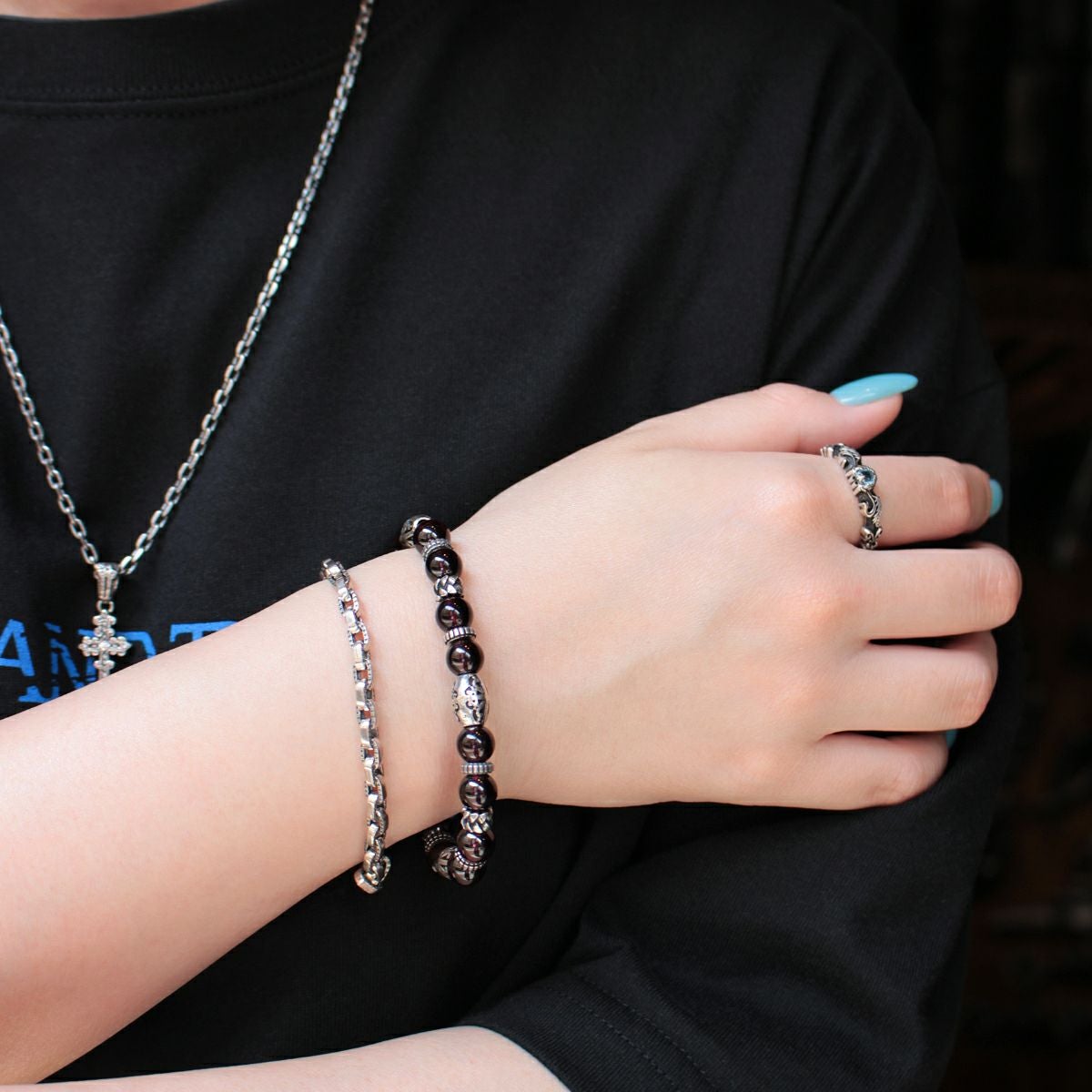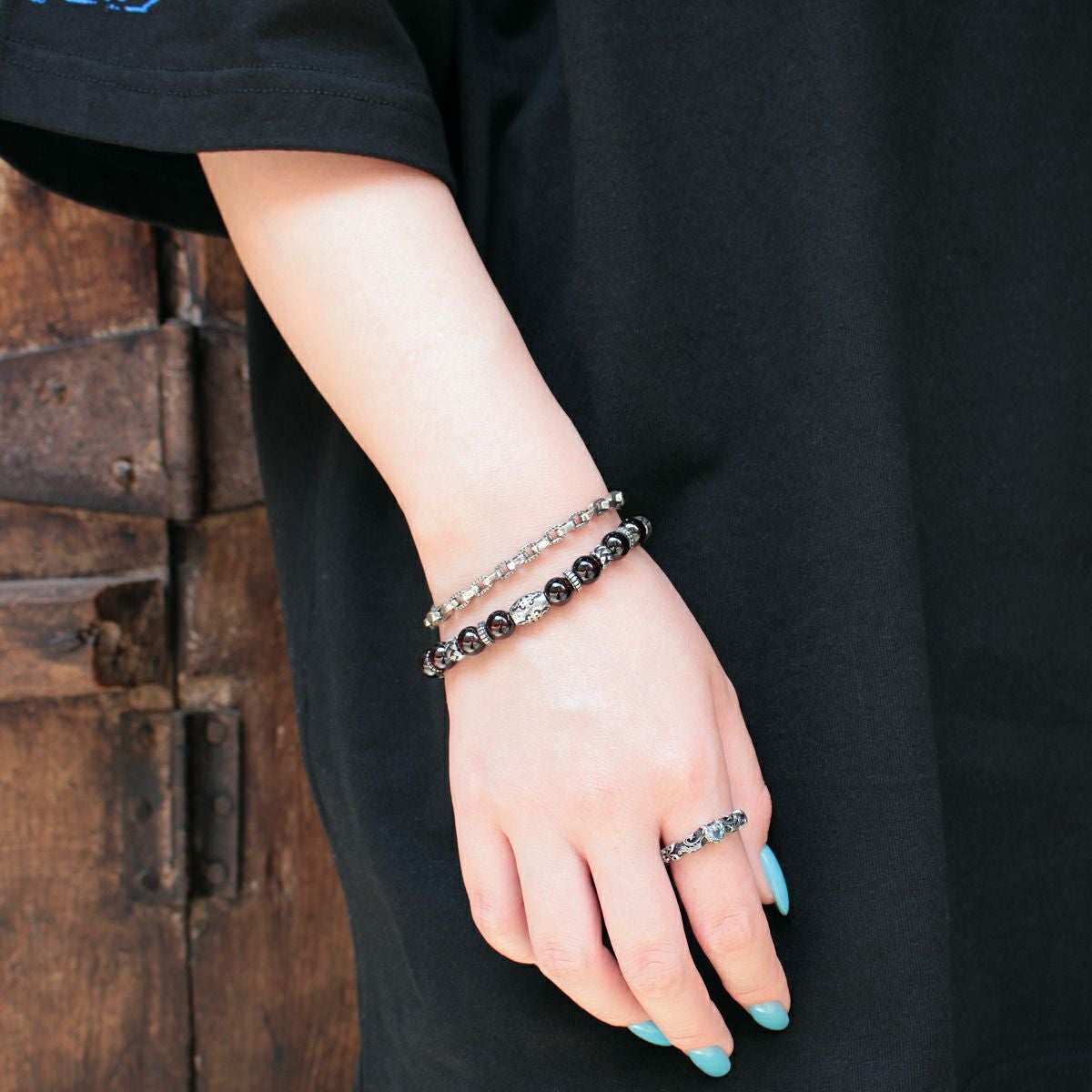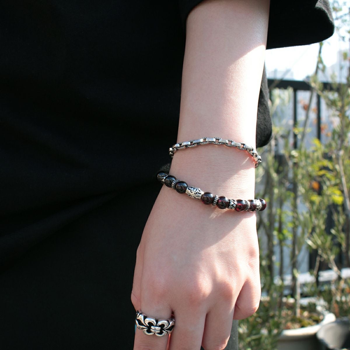 レザーズアンドトレジャーズ 8mmガーネットビーズブレスレット/Cタイプ