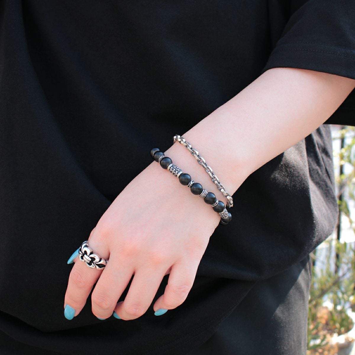 レザーズアンドトレジャーズ 8mmマットオニキスビーズブレスレット/Bタイプ