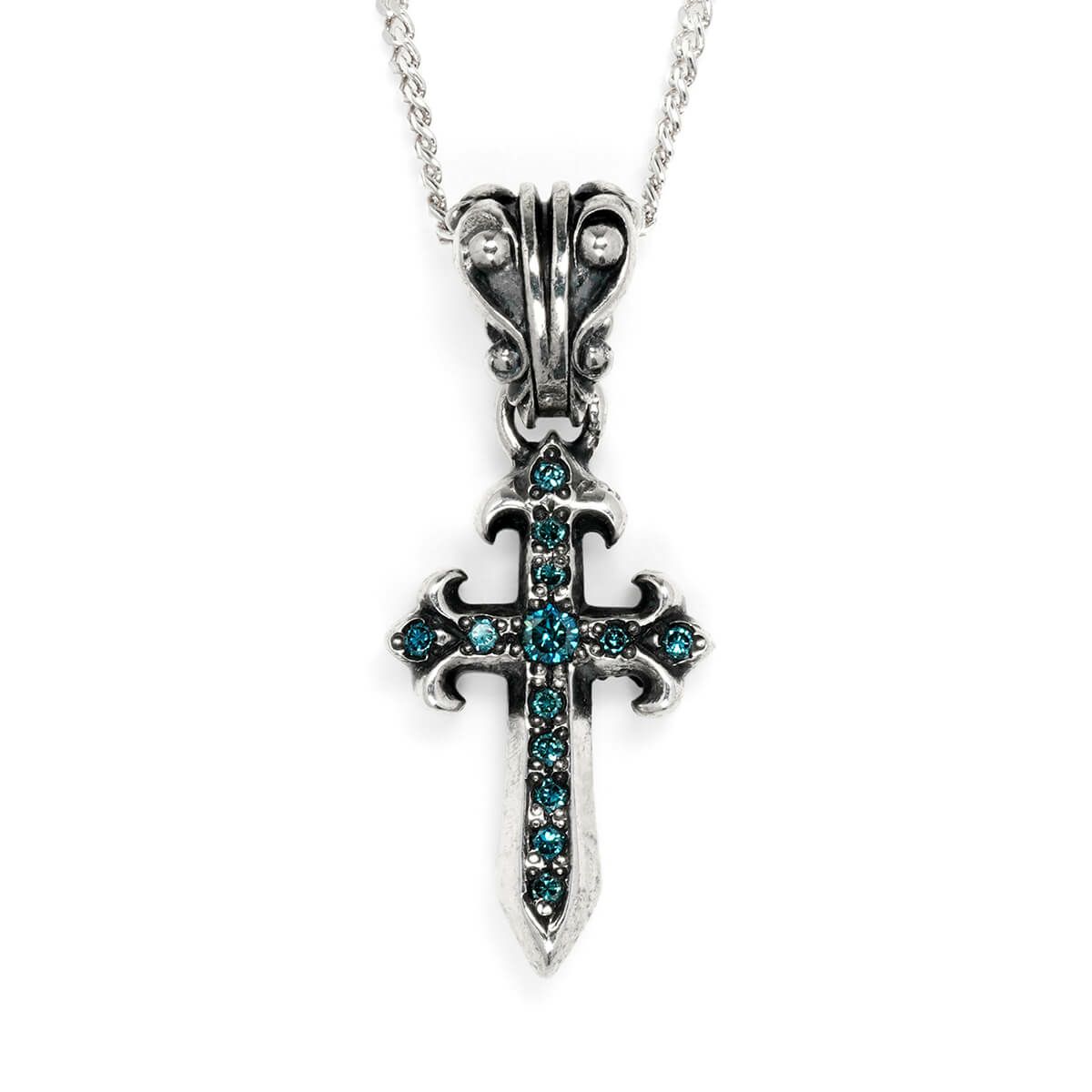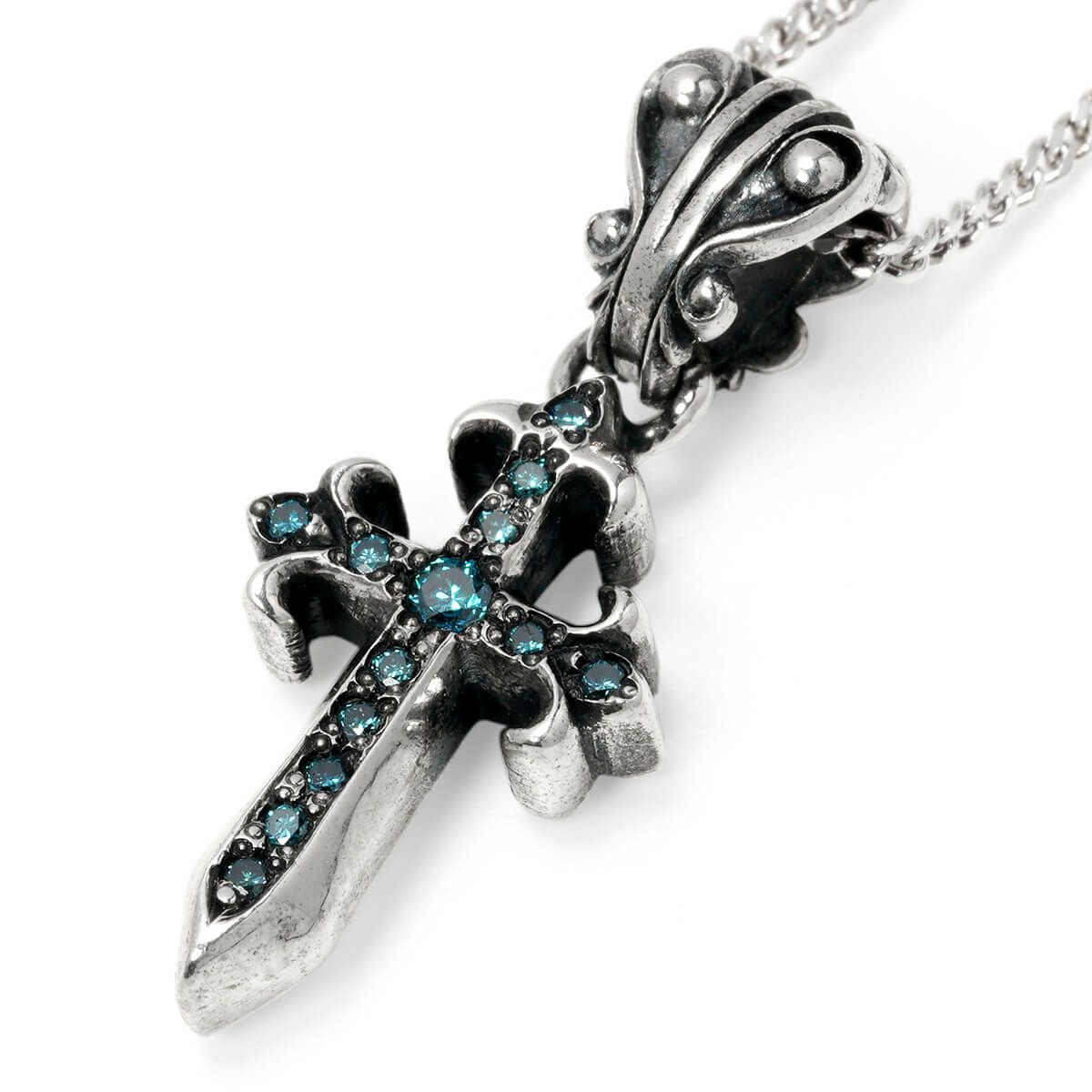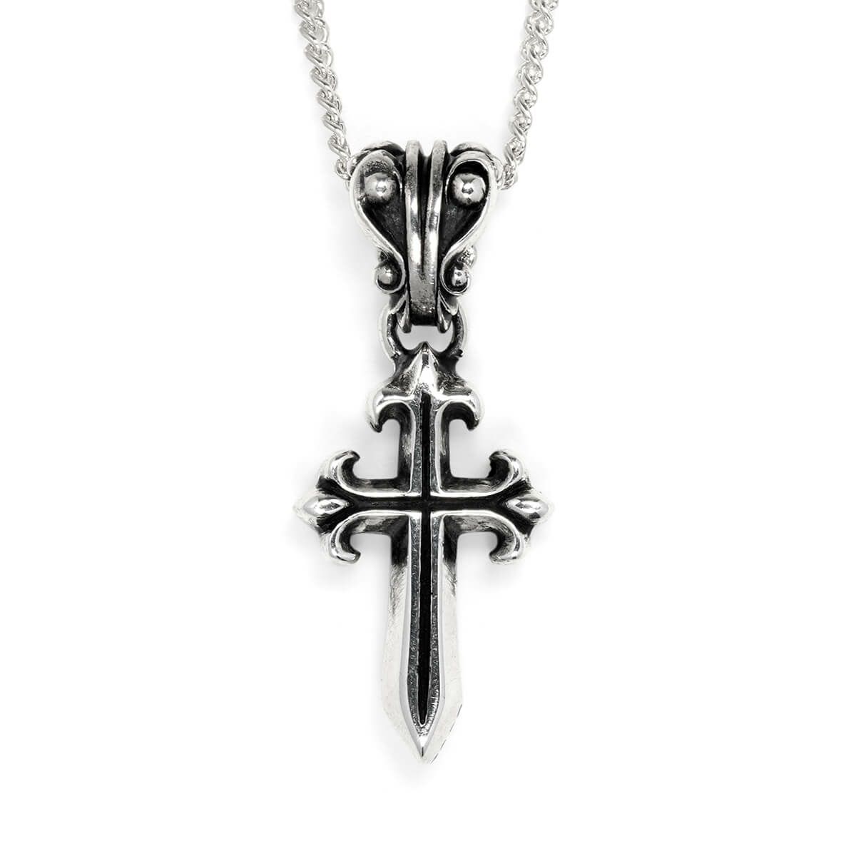 クロス下部が剣先のようになっている、デザイナーの名を冠したクロスペンダント。