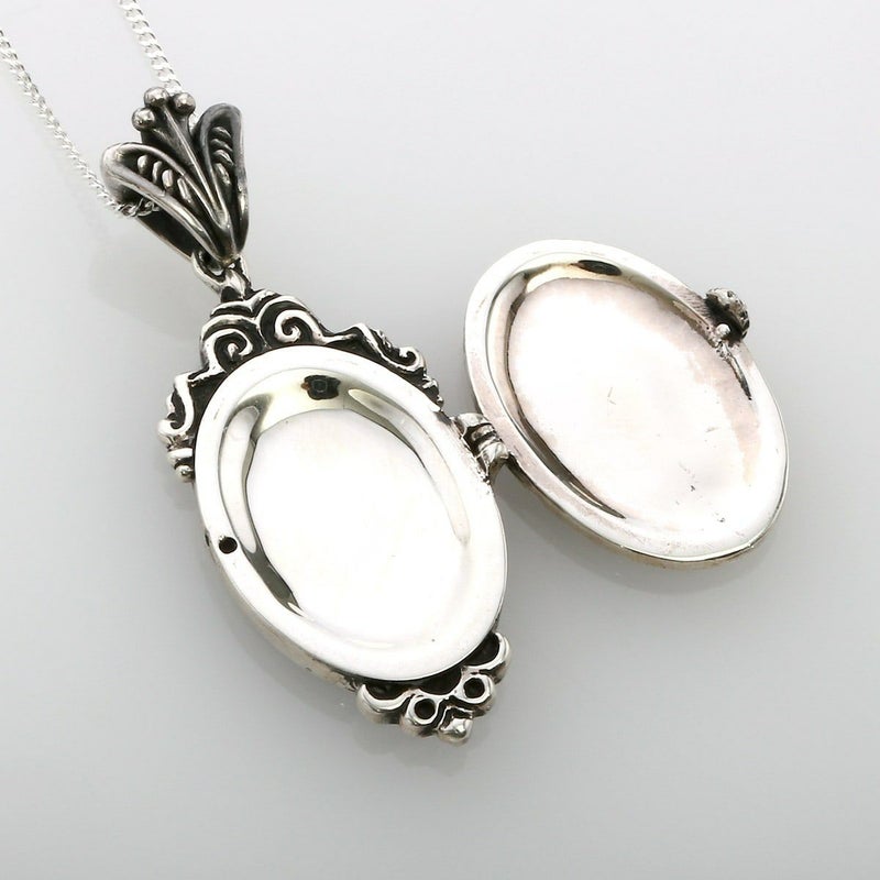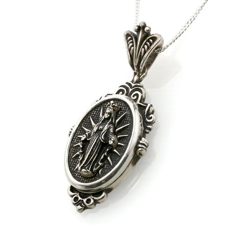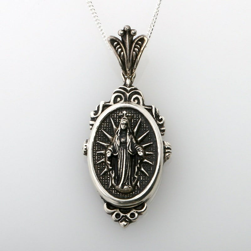 シルバー製のロケットペンダントのフロントにマリア様を加工したペンダント。