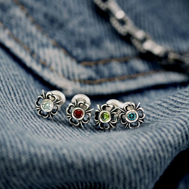 シンプルさを重視してデザインされた小振りの十字架は、中央に留められた天然石がワンポイントのアクセントになる人気アイテム。透き通った輝きのあるアイスブルーダイヤモンド。耳元を涼しげに表現してくれる。