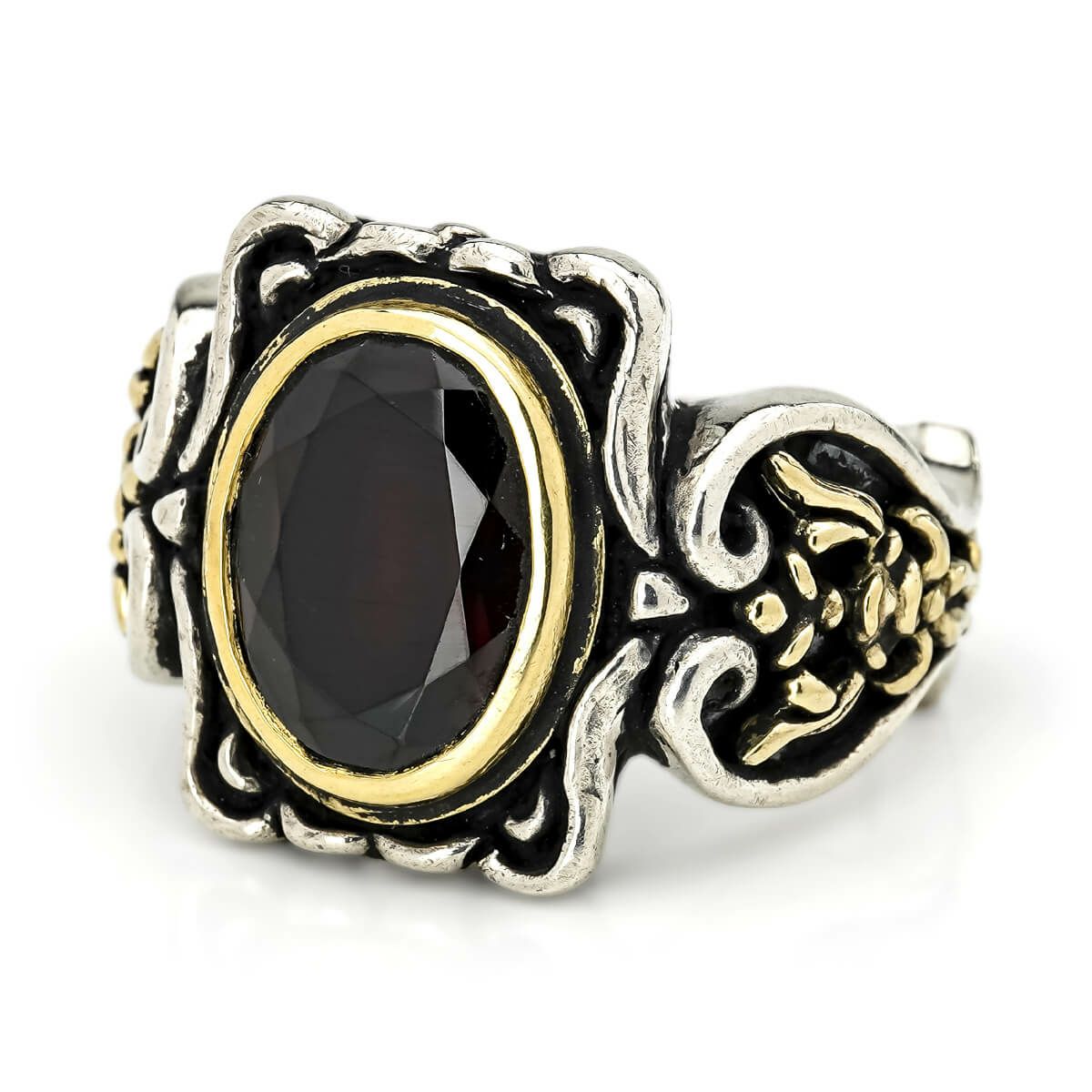 【現品のみ】レザーズアンドトレジャーズ スクエアクレストリング w/ガーネット w/K18ベゼル&サイド【リングサイズ24号】