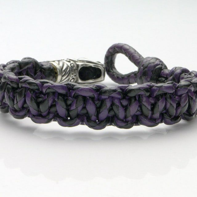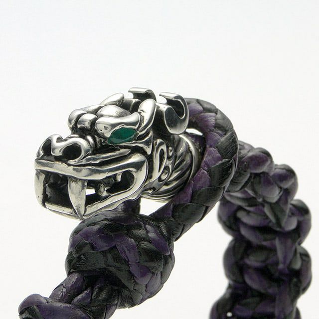 レザーズアンドトレジャーズ ブレーディング レザー ドラゴン ブレスレット/エメラルドアイズ/ブラック&パープル