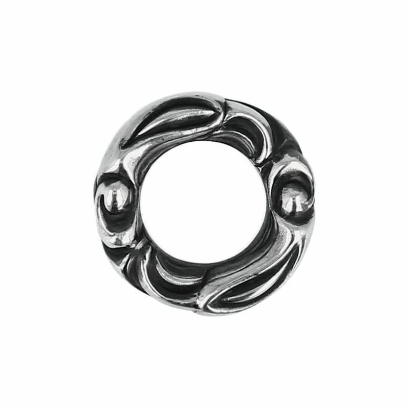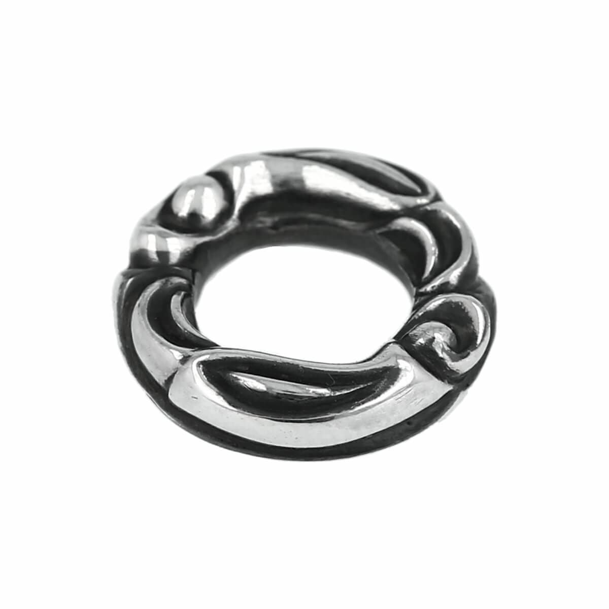控えめな大きさのサークル型ペンダント。シンプルながらもデザイン性が高く存在感が光る作品。