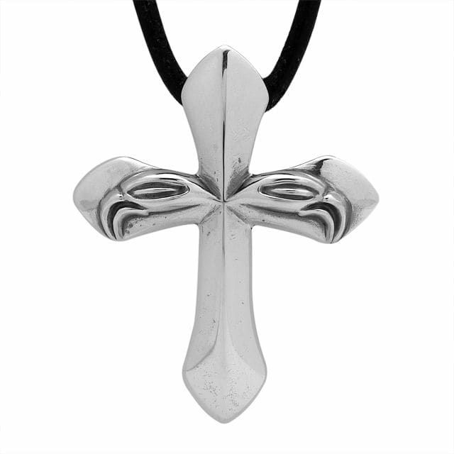 鏡面仕上げのクロスに、2羽の鳥をデザインしたペンダント。シンプルながらもブランドの特徴が滲み出ている作品。