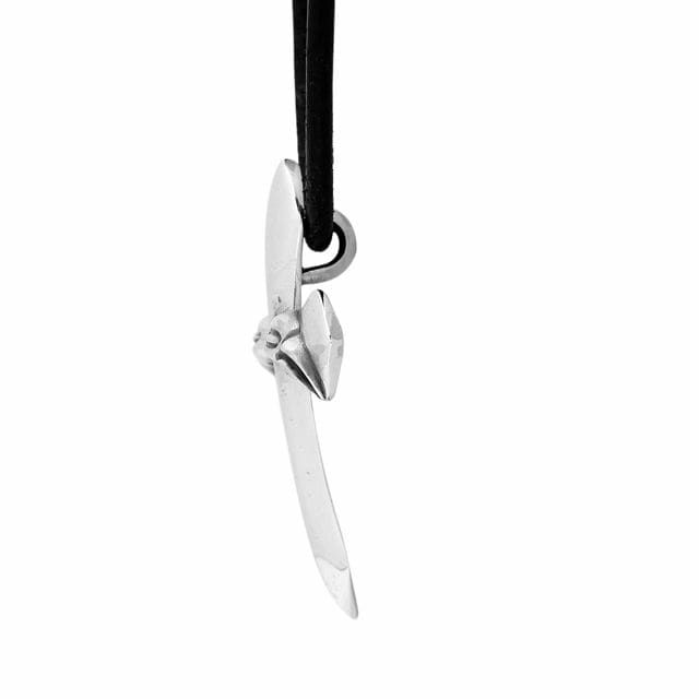 鏡面仕上げのクロスに、2羽の鳥をデザインしたペンダント。シンプルながらもブランドの特徴が滲み出ている作品。